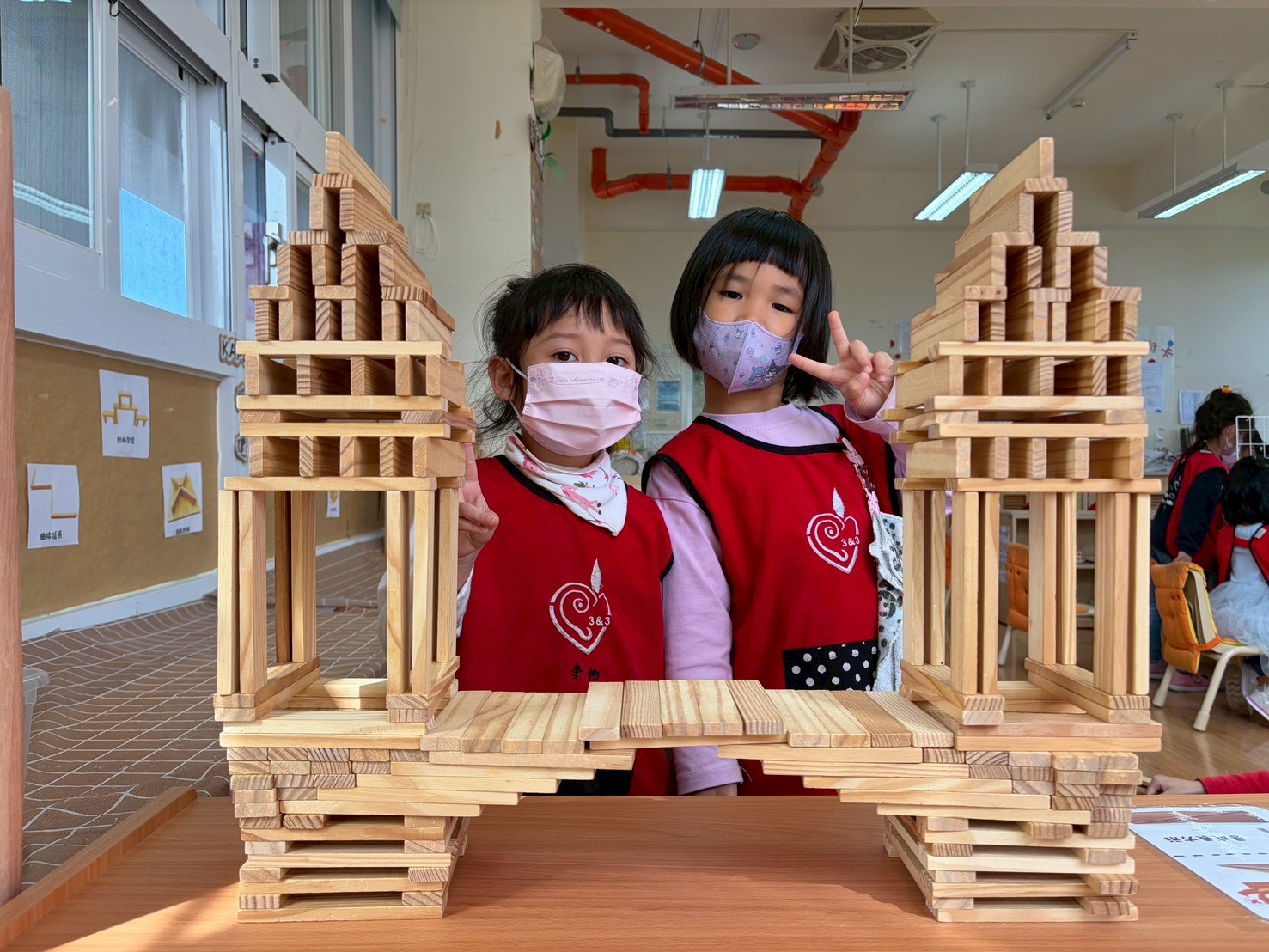 孩子們在Kapla區觀察圖鑑上的塔,並根據重點復刻學校模型。他們巧妙地利用積木搭建出具建築特色的作品。這過程不僅激發了創意,也培養了孩子們的空間思維與手眼協調能力。