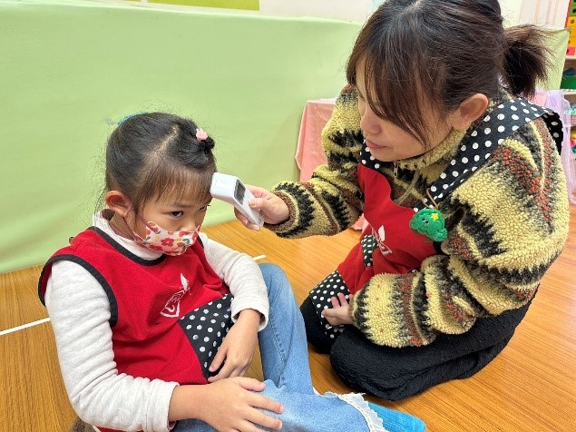 1.詢問幼童有何不舒服症狀,同時用體溫計測量體溫。