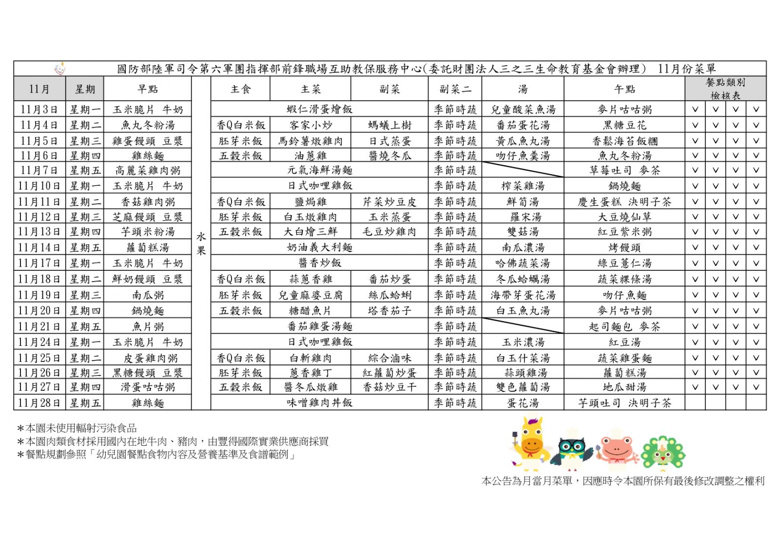 114學年度上學期11月份菜單