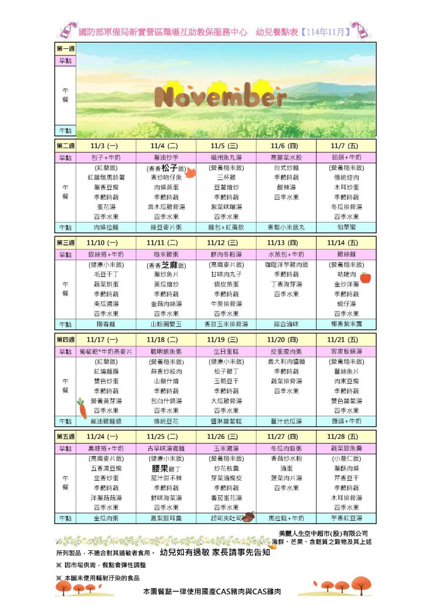 114年11月份餐點表