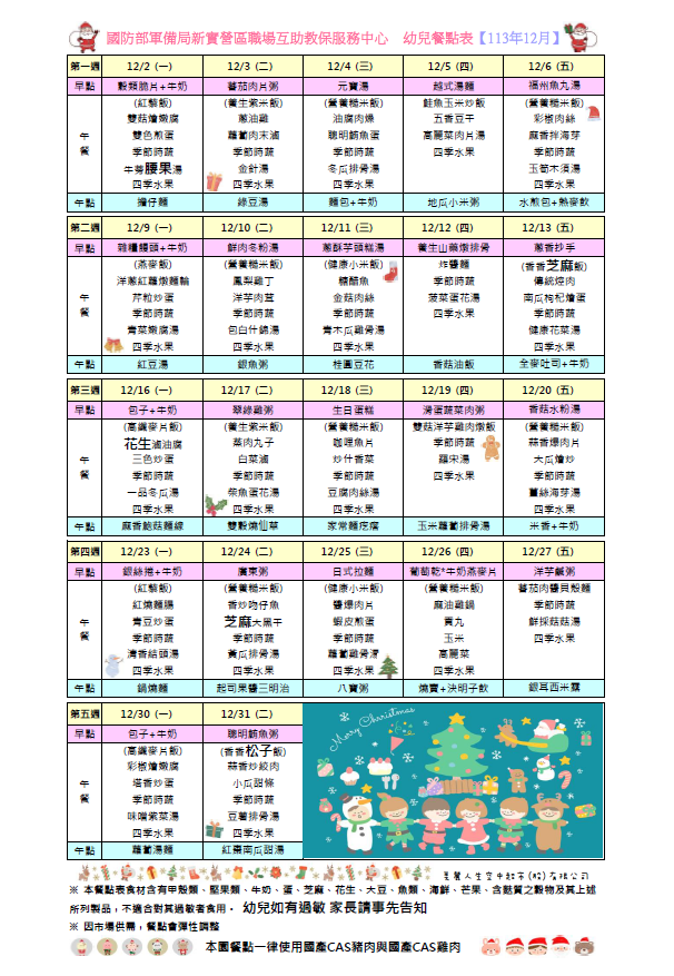 113年12月份餐點表