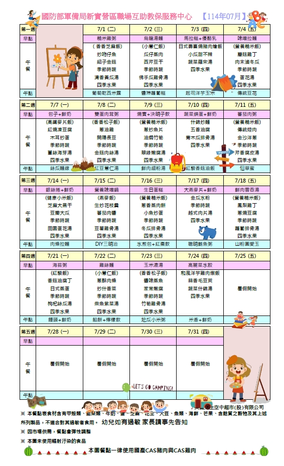 114年07月份餐點表