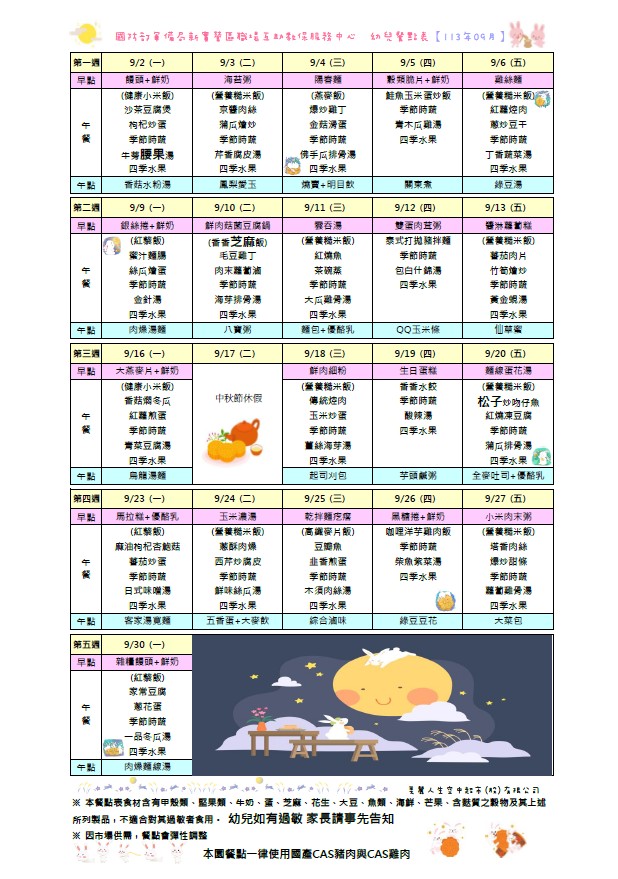 113年9月份餐點表