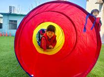 過山洞:彎腰或蹲下穿越山洞障礙物,訓練身體彈性、空間判斷與動作調整能力。