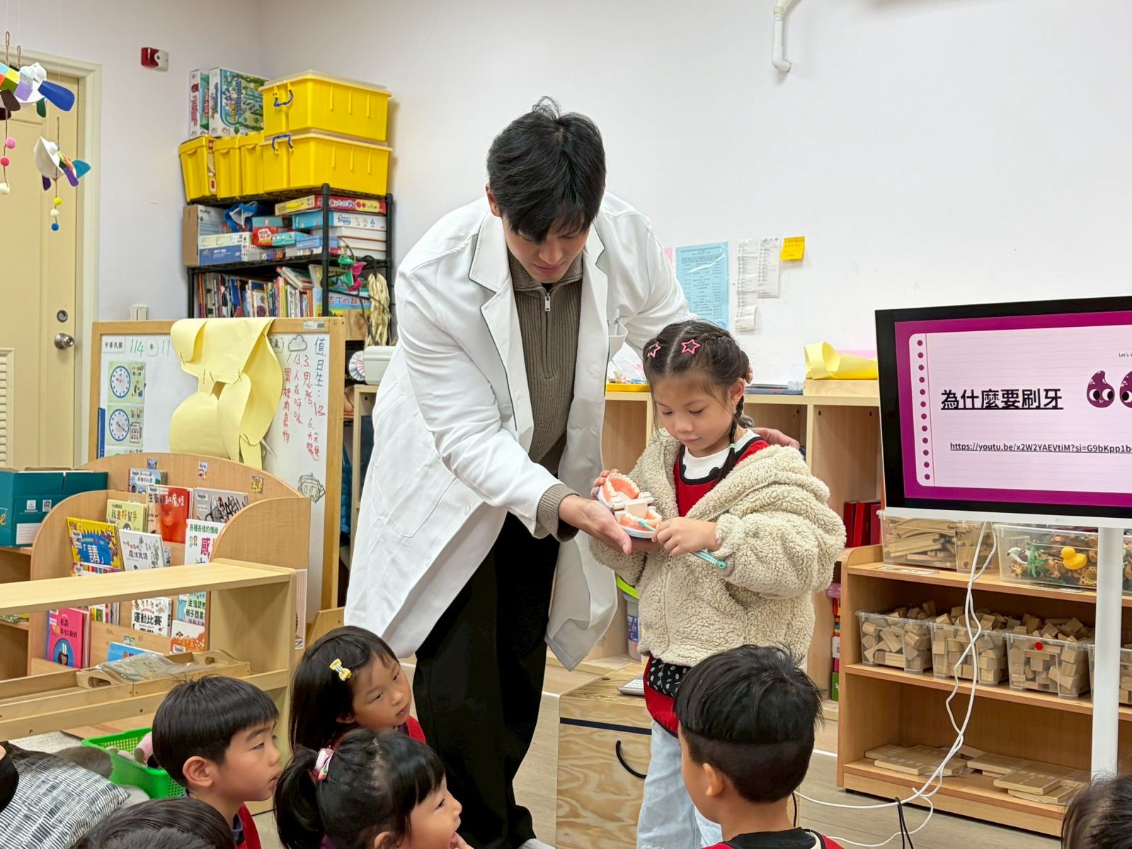 藉此也透過影片及實際操作教導幼兒正確刷牙的方式,讓幼兒知道如何保護好自己的牙齒。