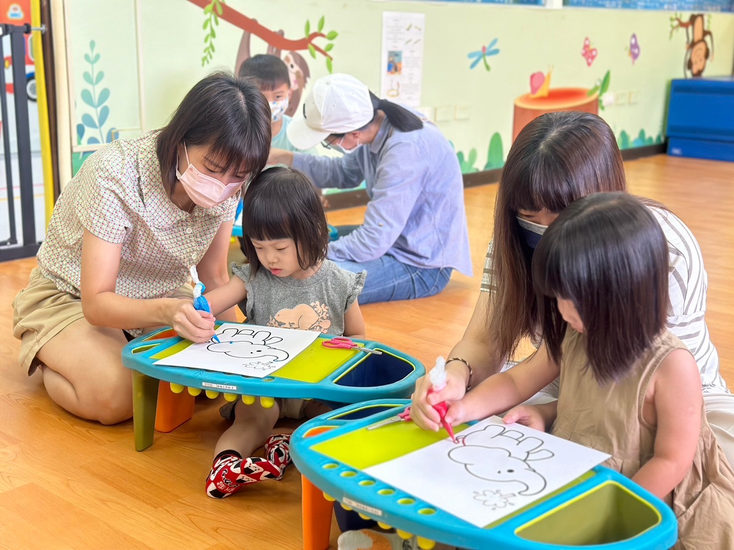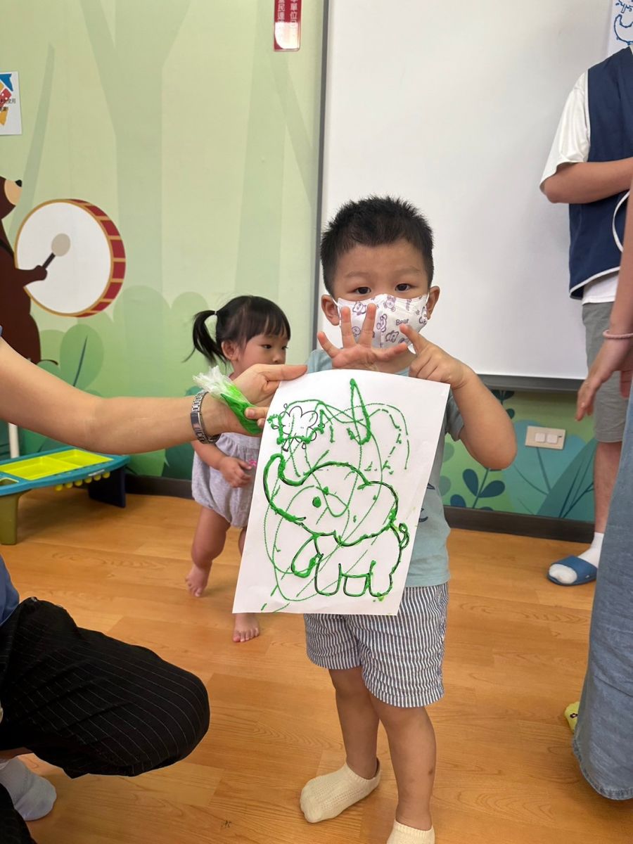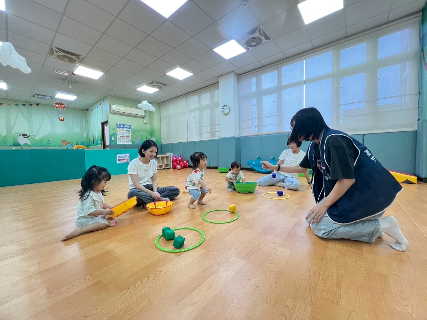 親子先跟著音樂一起動動身體,調整心情準備上課囉,