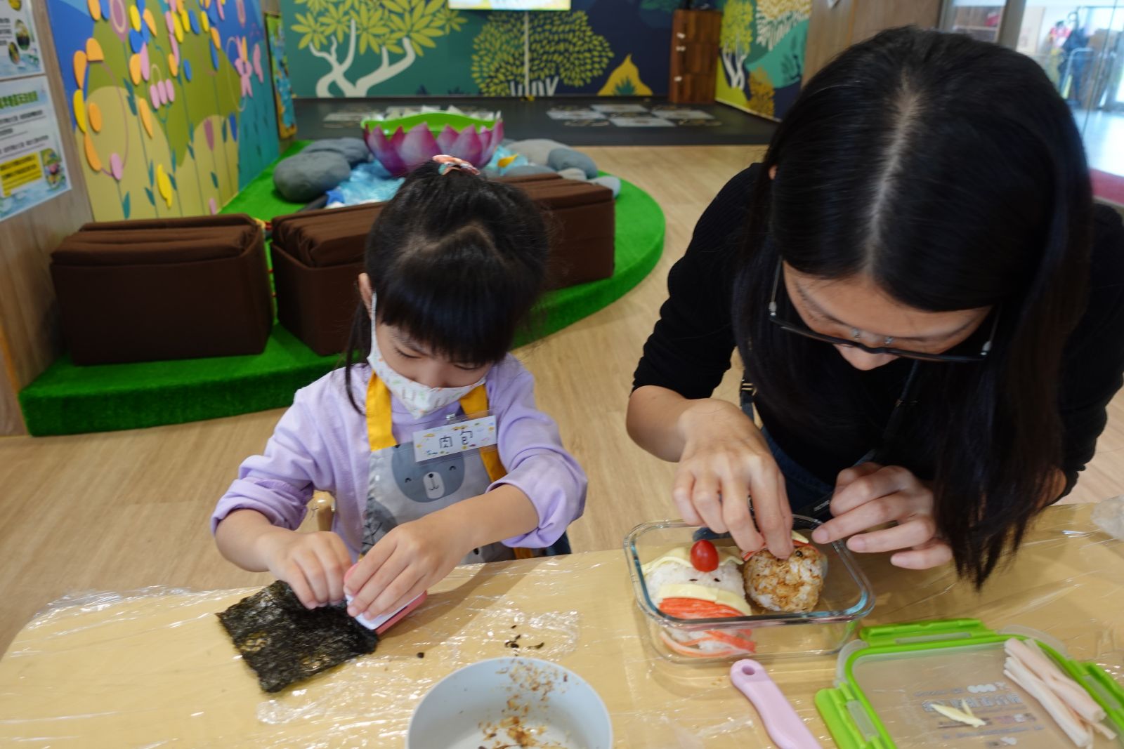 在歡樂的聖誕音樂與律動中,大小朋友跟著老師一起認識聖誕老人,開心進入節慶時光。孩子在家長陪伴下揉捏米飯,捏成可愛的麋鹿與聖誕老人壽司,有的親子還幫聖誕老人貼上彎彎的海苔,變成笑咪咪的,非常可愛!在笑聲與合作中完成作品,也留下溫馨又甜甜的聖誕親子回憶。