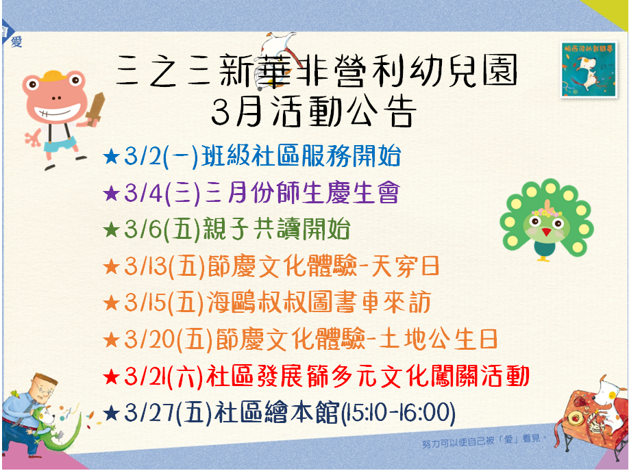 【三之三新華園~3月活動公告】