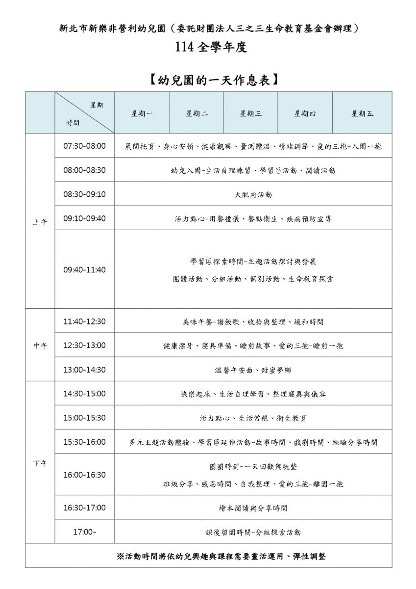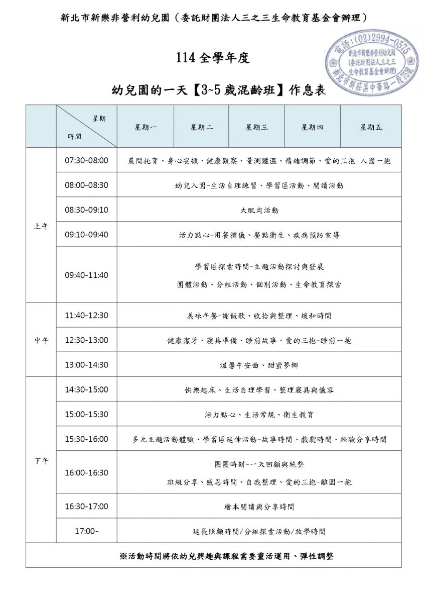 一日作息表 【3-5歲混齡班】PDF檔下載 ☞ 下載請點我