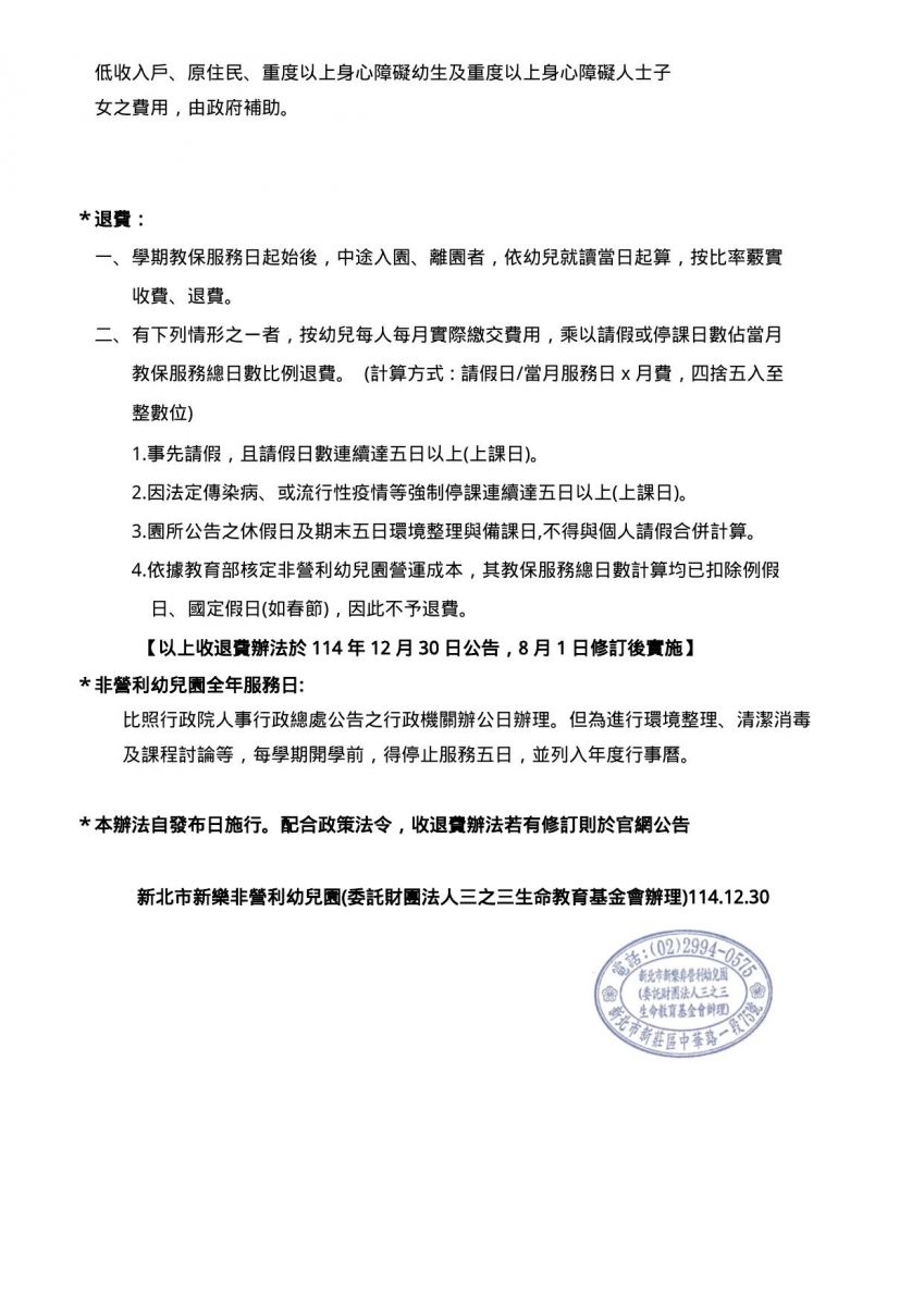 114學年度第一學期 收退費辦法114.06.30