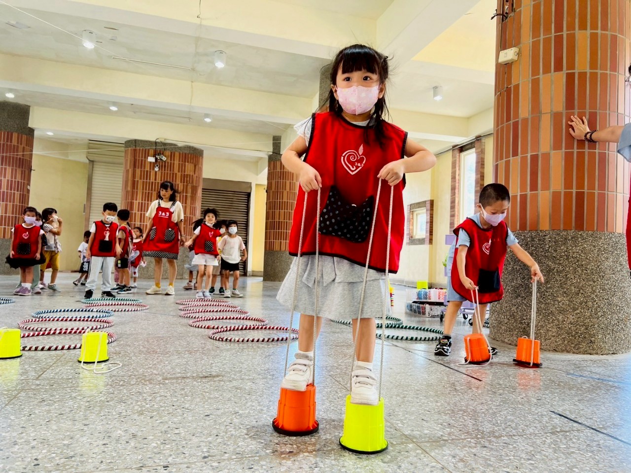 【唯我獨尊】踩高橇:踩著高橇走進呼啦圈,再走回去,訓練孩子的平衡能力,與提升身體平衡。