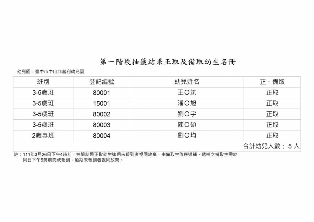 111學年第一階段抽籤結果公告