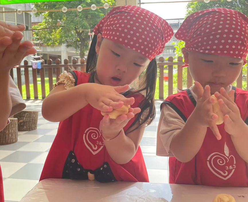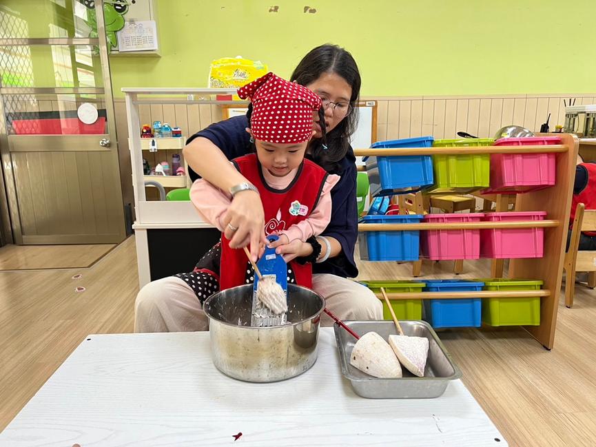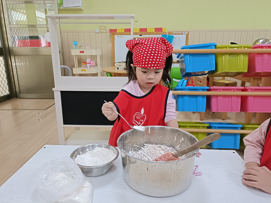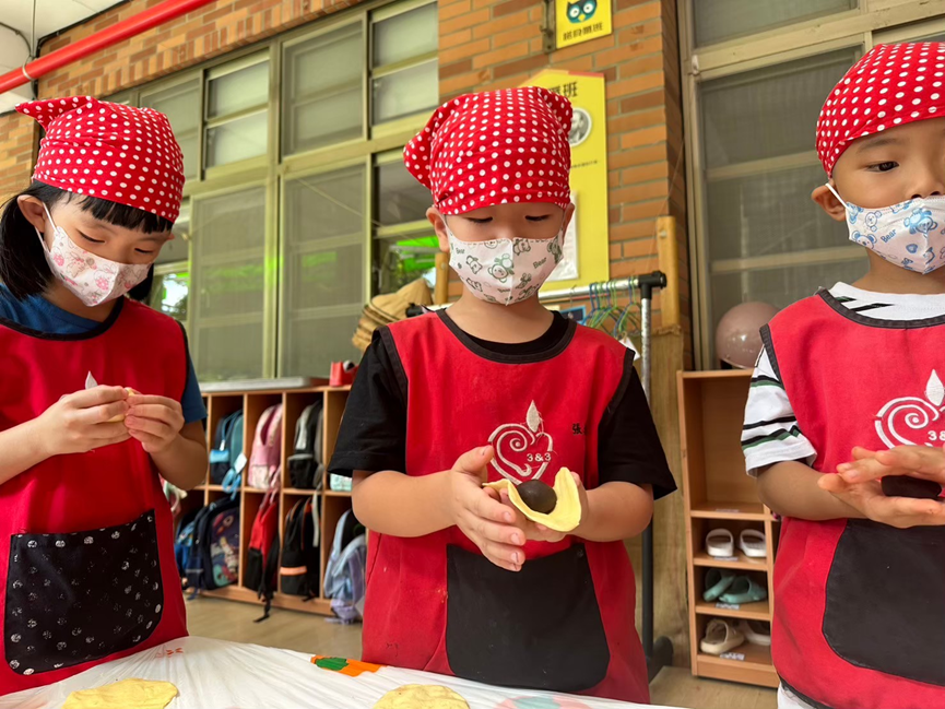 3.包入紅豆泥及芋泥內餡。