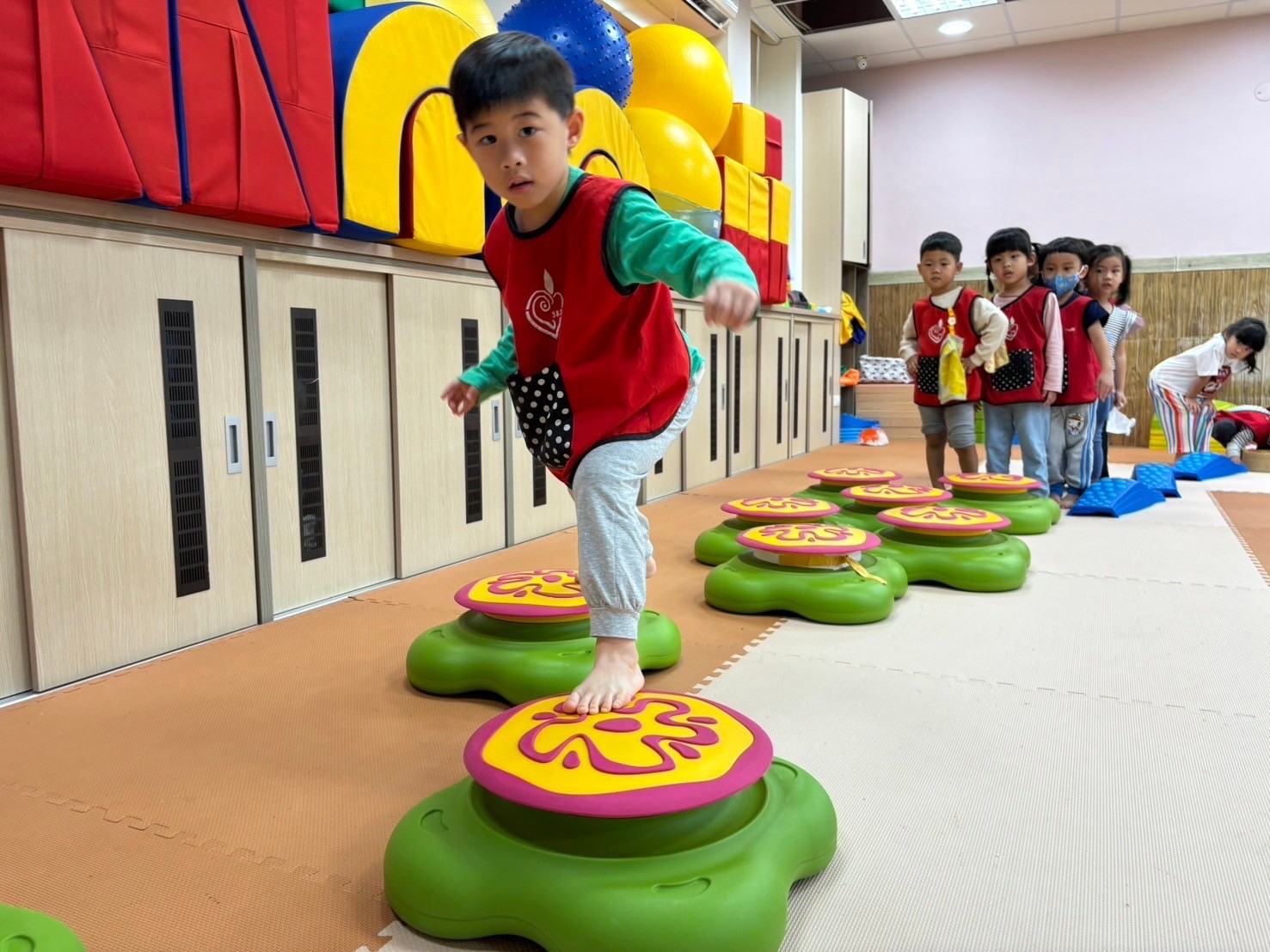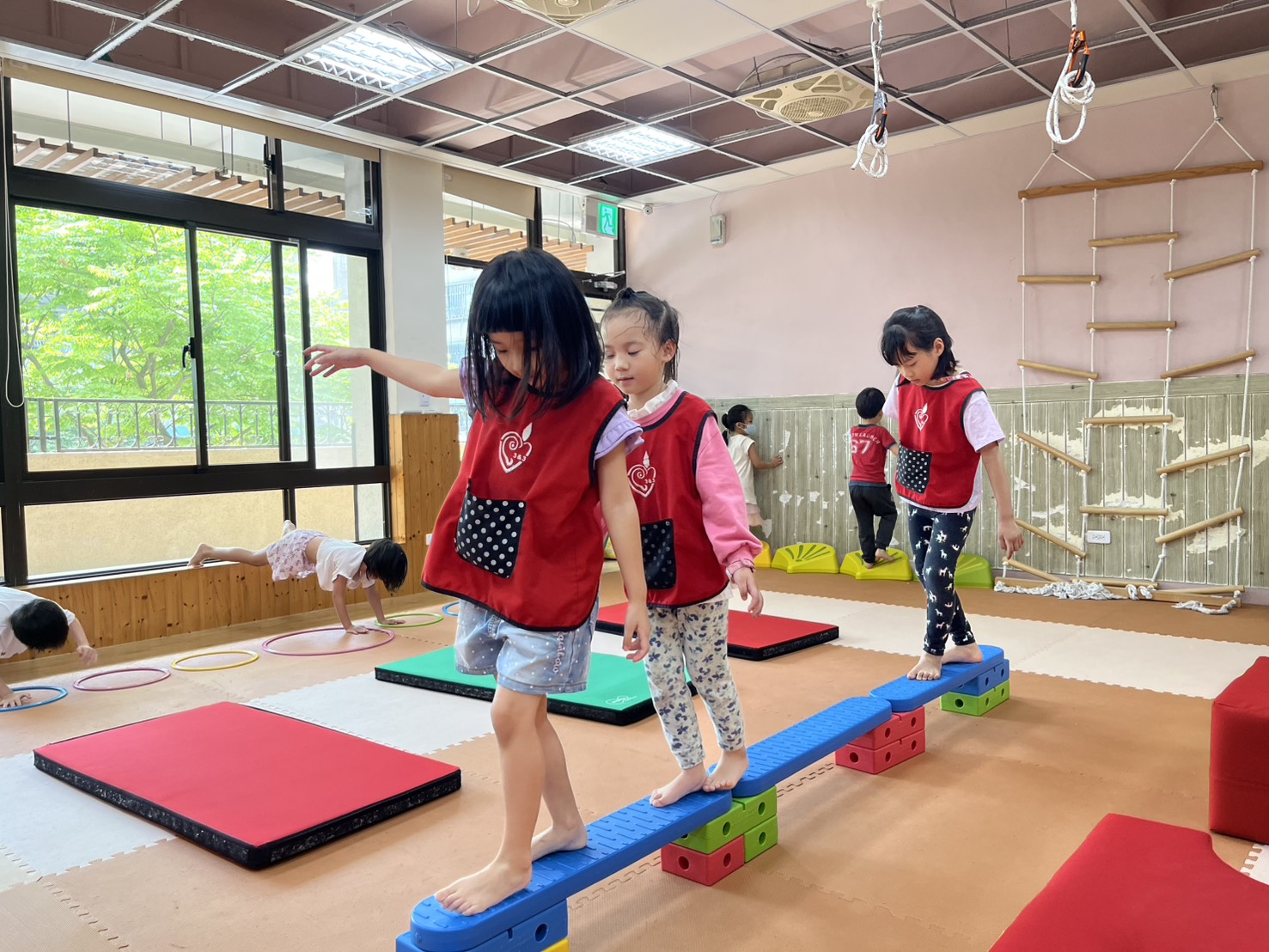 本月份開始邀請孩子挑戰各式平衡動作,透過平衡木、波浪板等器材,適時地依照孩子們的年齡調整關卡難度,陪伴孩子進行各項平衡動作!