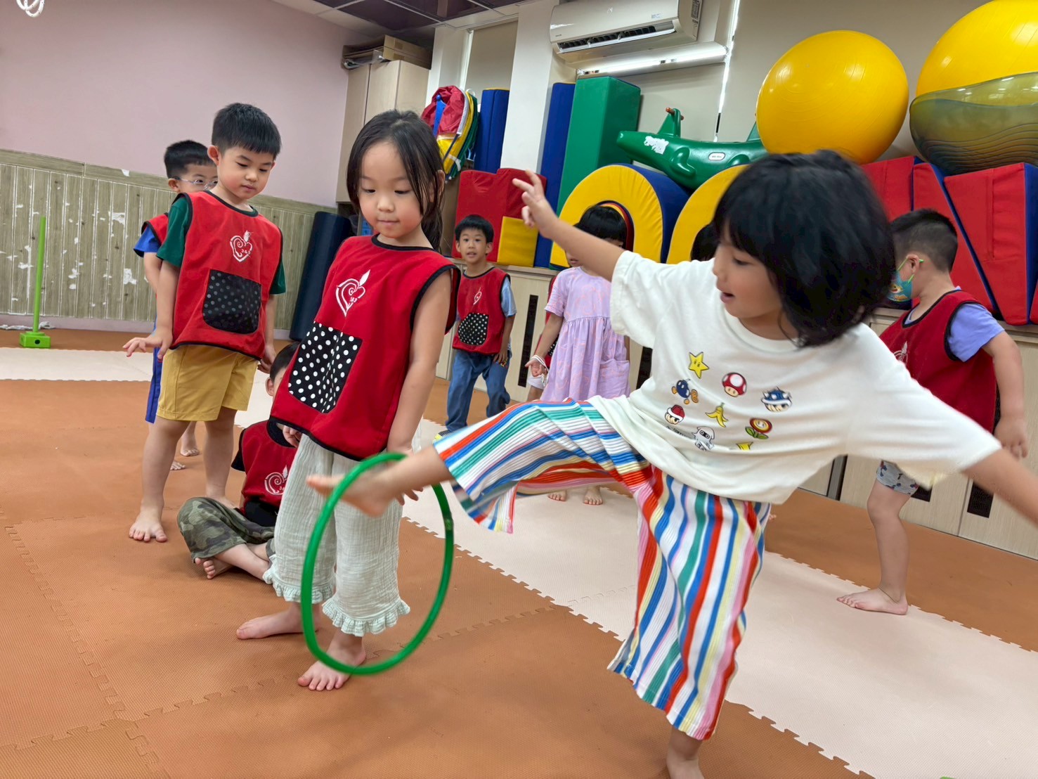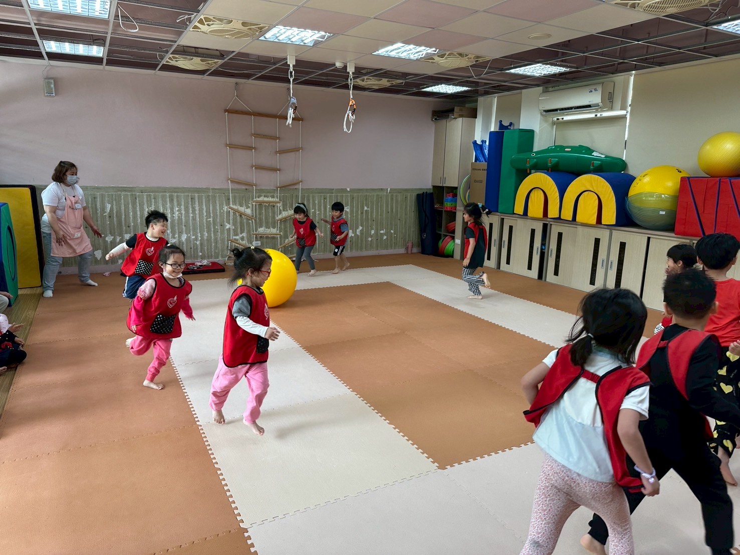 本月份邀請孩子進行各項動作來提升孩子在執行時的敏捷性,藉由氣球傘、輪胎、球類器材來設計各個有趣的關卡讓孩子們挑戰喔!