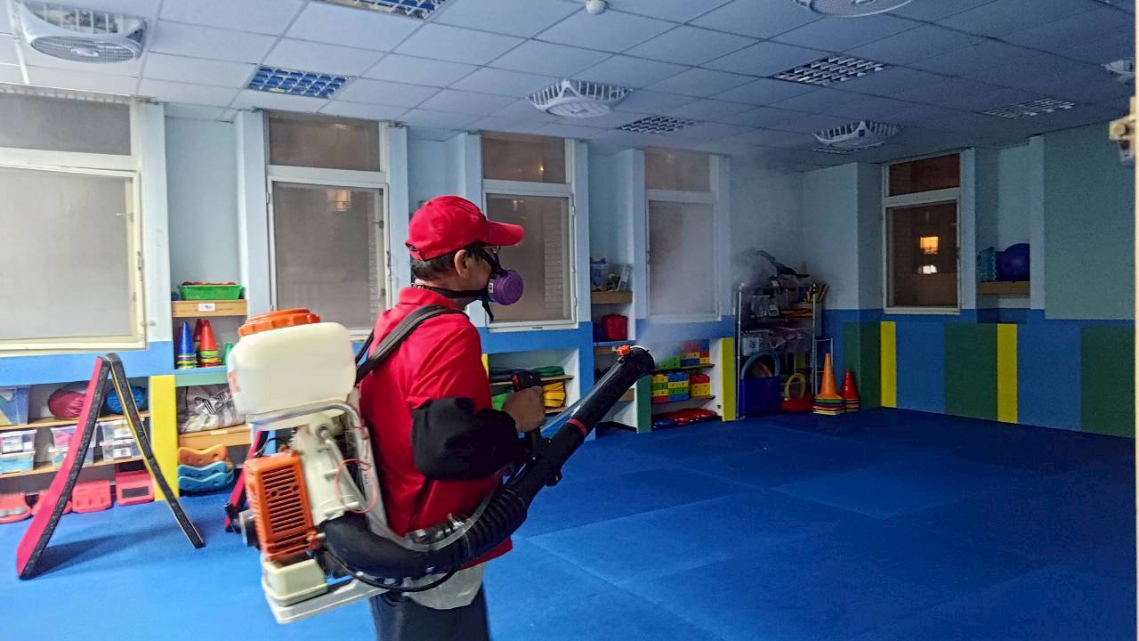 全園進行環境消毒,老師們認真清洗教玩具、打掃教室,確保孩子們擁有乾淨、安全的學習環境。