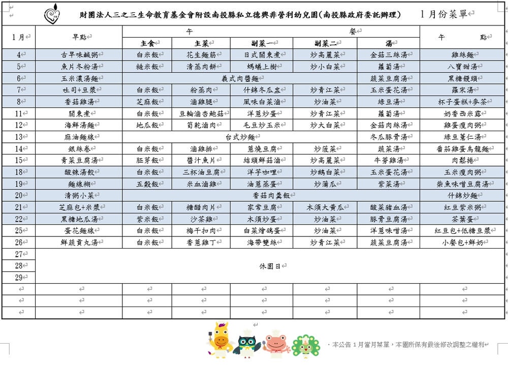 112-1月菜單