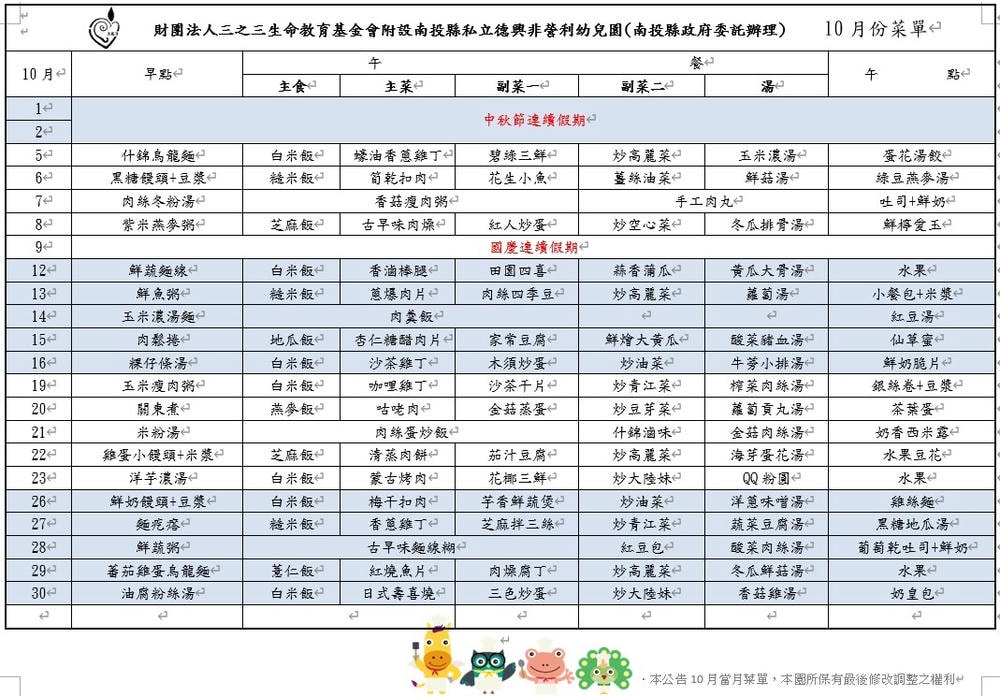 110-10月菜單