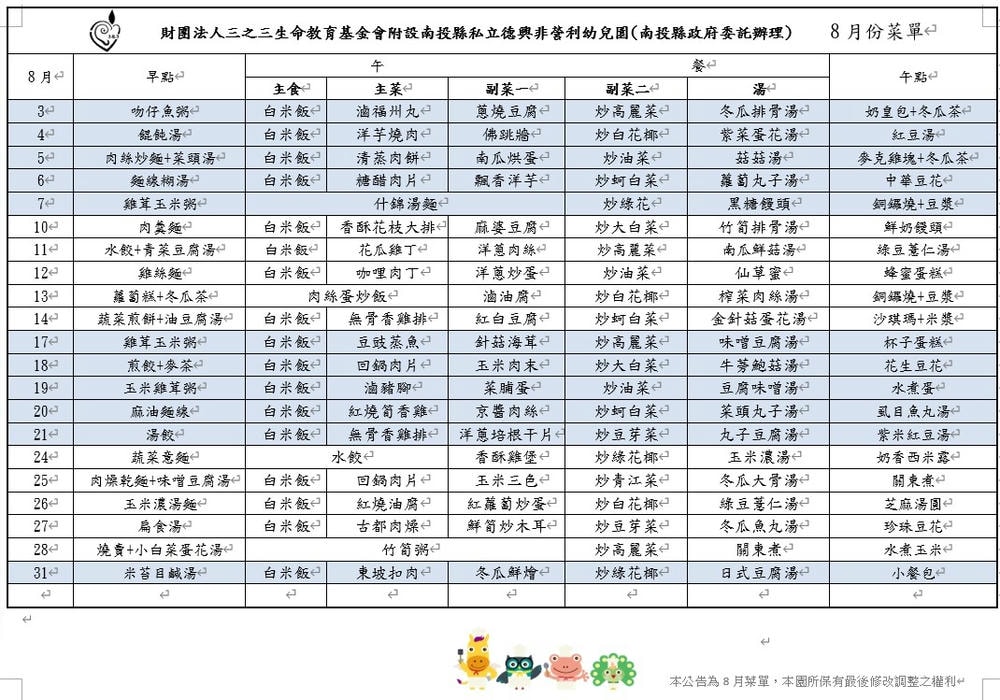 110-8月菜單
