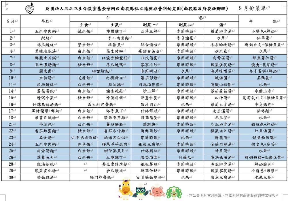 111-9月菜單