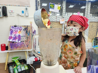 孩子們親手調配健康蔬果汁,將新鮮蔬菜與水果一起打成果香濃郁、營養滿分的飲品。