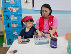 孩子們在幸福廚房親手製作「脆皮蛋塔」,從認識食材、學習步驟、混合攪拌,