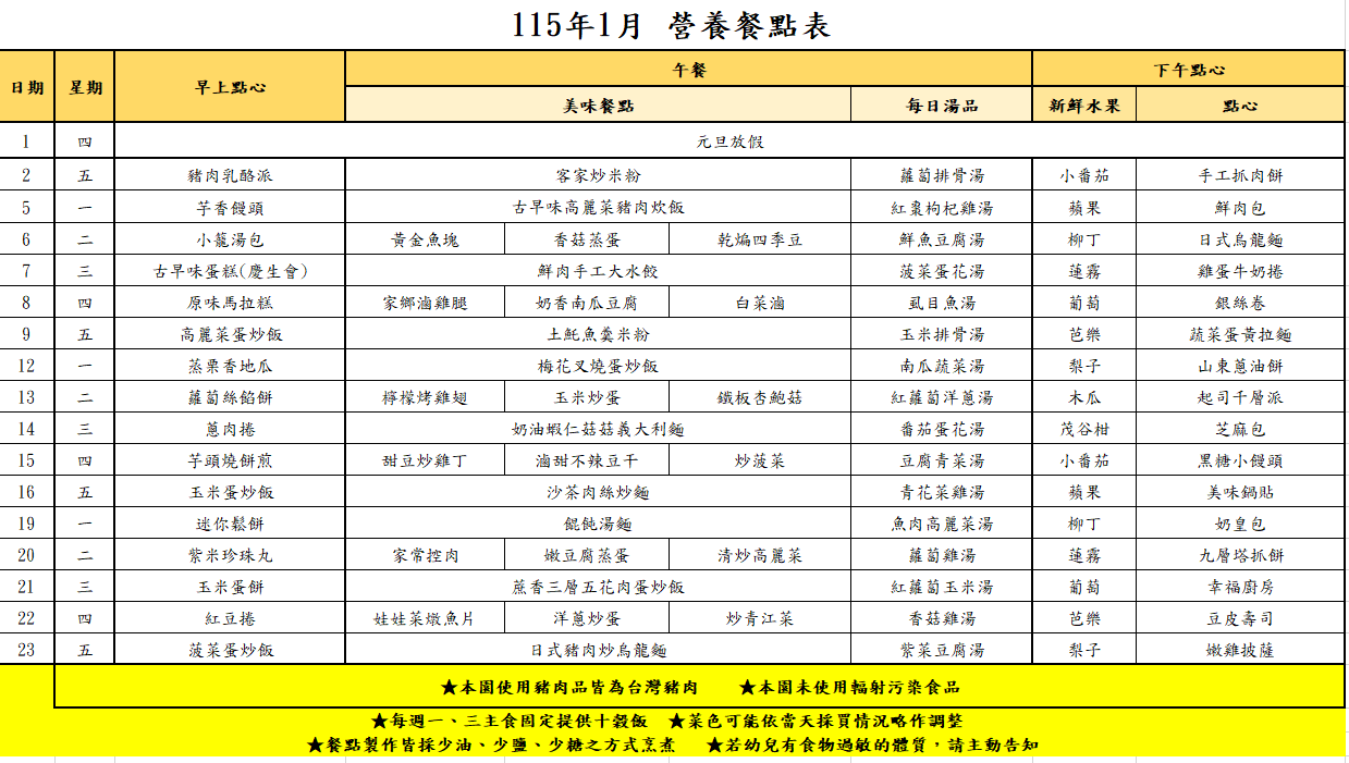 115年1月 營養餐點表