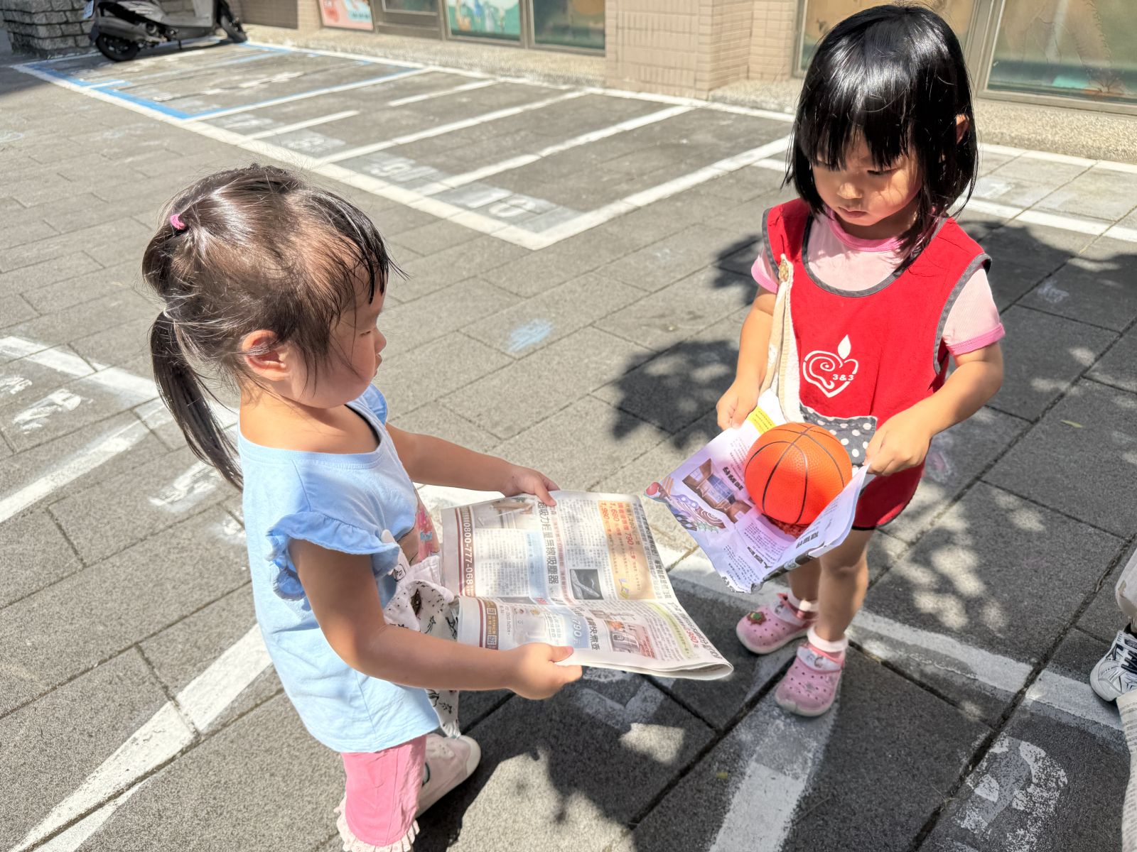 幼兒練習報紙進行傳接球遊戲,訓練幼兒手眼協調能力及團隊合作能力。