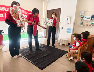 這次防災宣導活動與東英婦宣小組合作透過趣味互動,引發幼兒對消防安全教育的好奇心,聚焦於「認知、通報、自救」三大核心,展示滅火器成功開啟幼兒的討論動機,