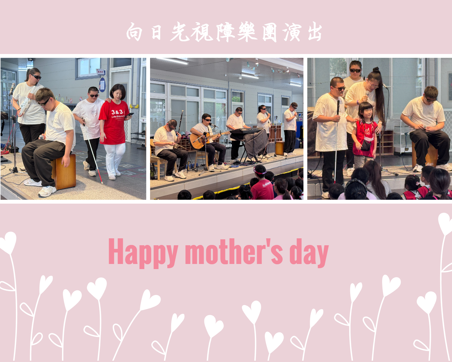 藉由劇場演出、班級愛之任務,邀請向日光視障樂團到學校演出,一系列母親節活動,讓孩子表達感恩與愛意、幫助孩子理解「感恩」與「關懷」的重要性,並提升情緒與同理心之發展,在這天,充滿愛與溫馨日子,祝福偉大的媽媽們母親節快樂,謝謝您的付出陪伴我長大。