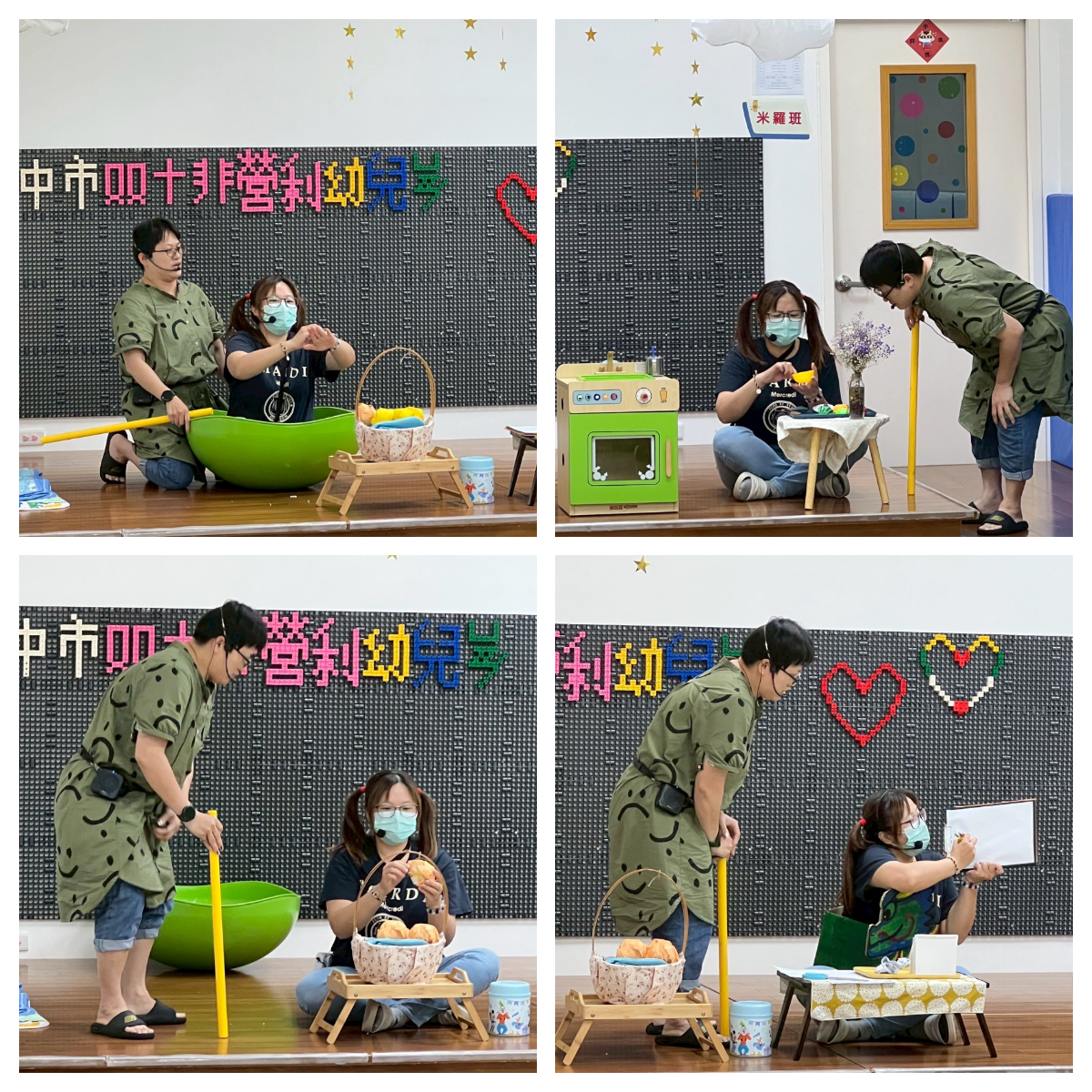 - 透過劇場,引導幼兒言語的重要性及對他人的影響,即使是無心的一句話,也可能造成不好的後果,如何說出不傷他人話語及好好說話的練習。
