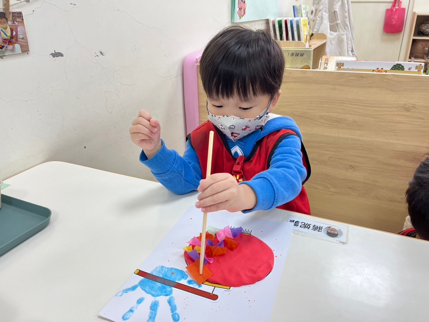 配合節慶文化活動,我們在家長接送時間讓家長和寶貝一起利用壓模和輕脂土製作月餅,