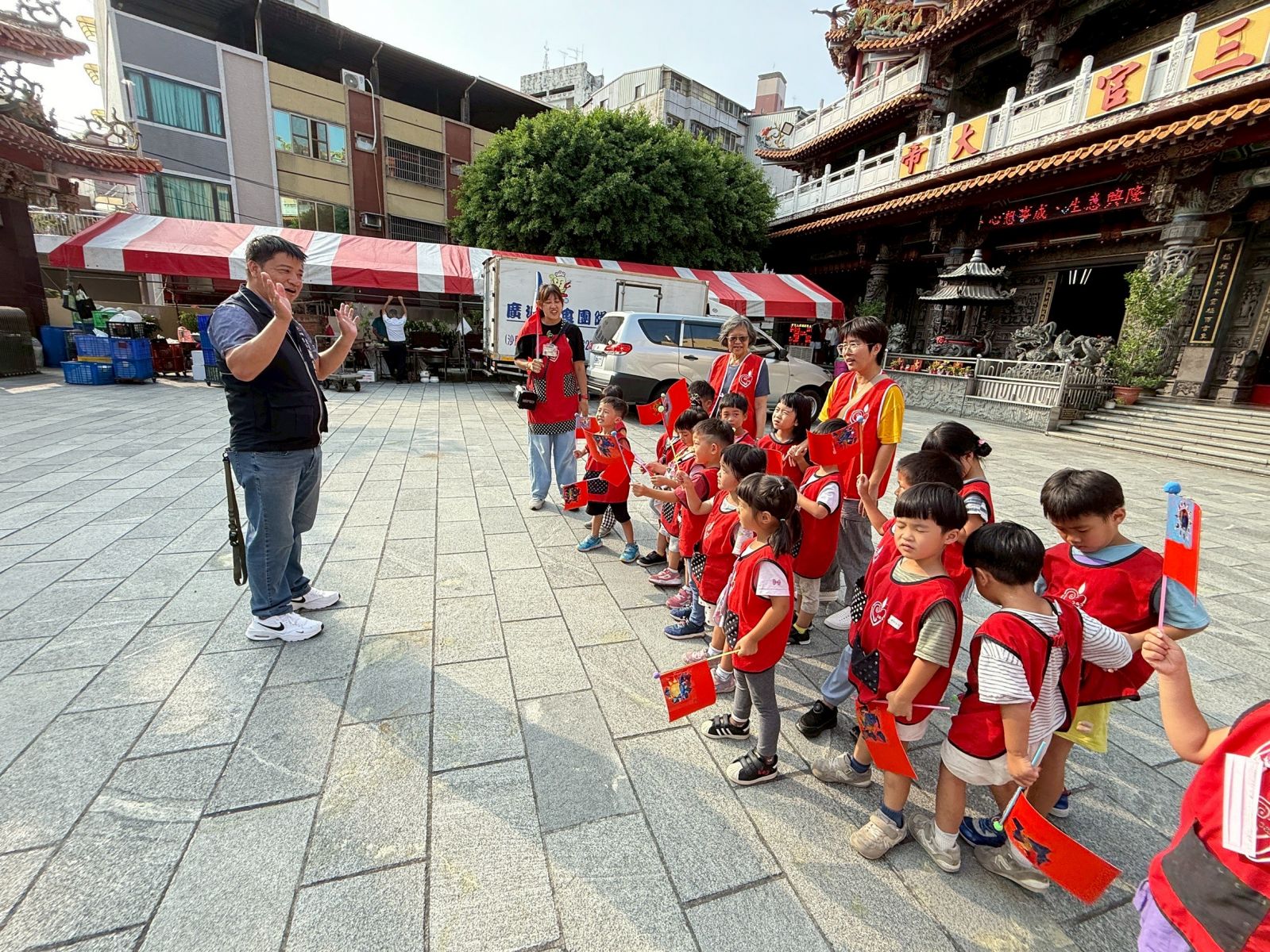 讓寶貝一起體驗升旗、遊行等等過程,寶貝第一次參與這個活動,大家都很開心呢!