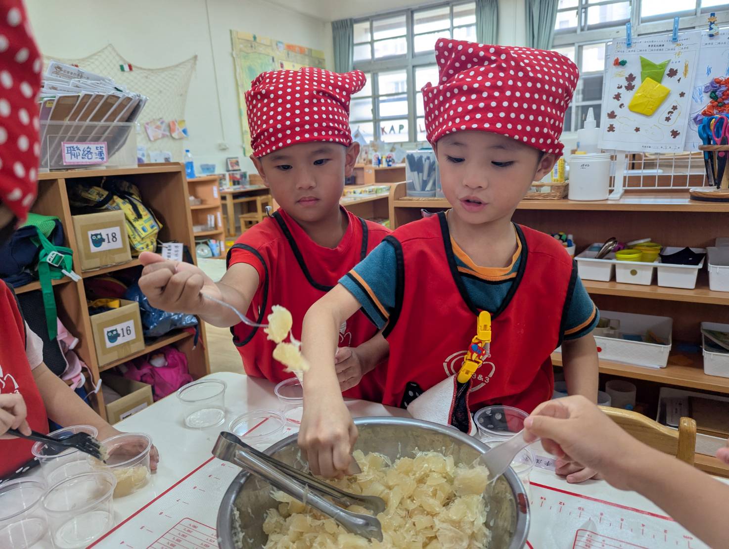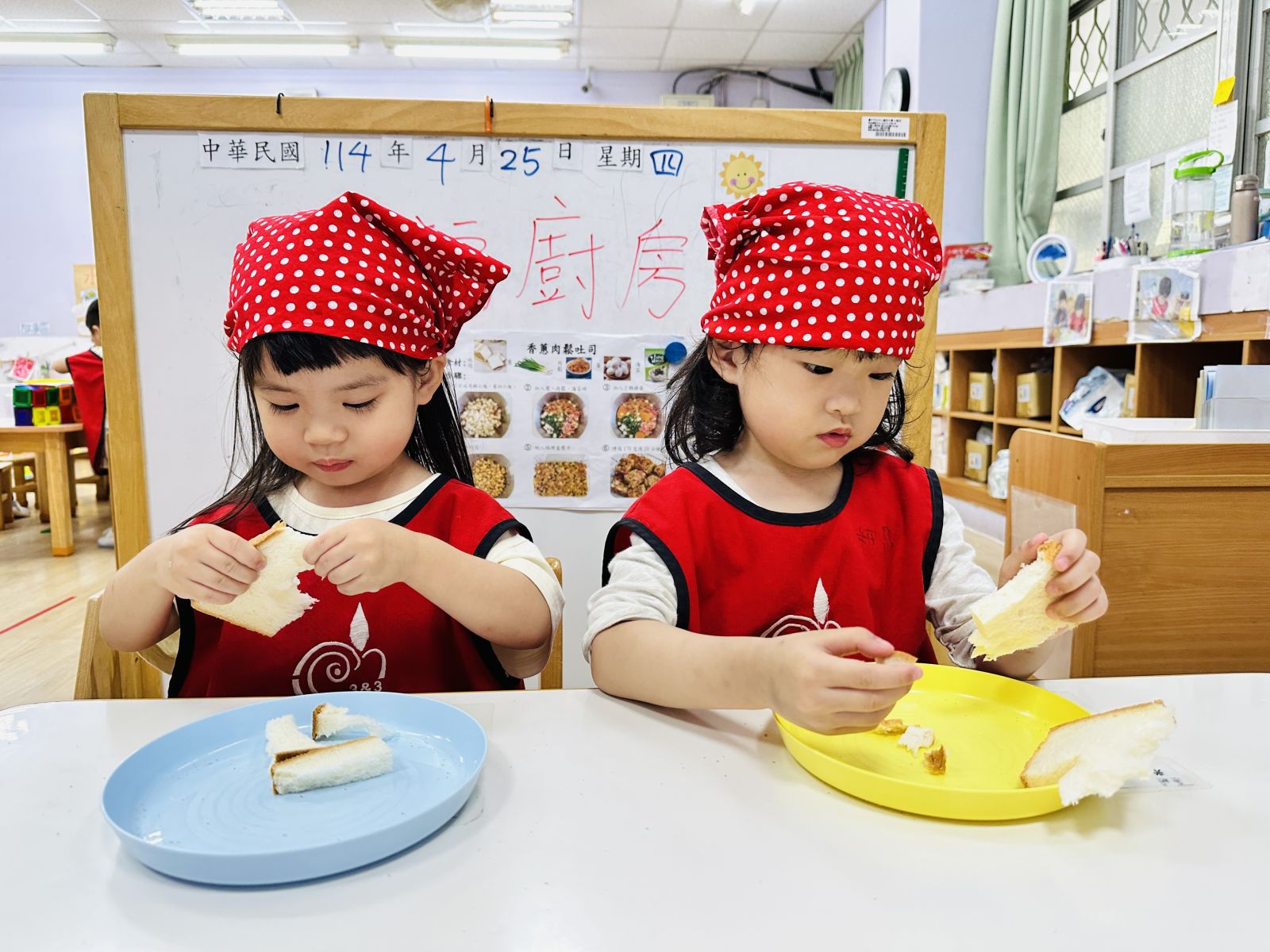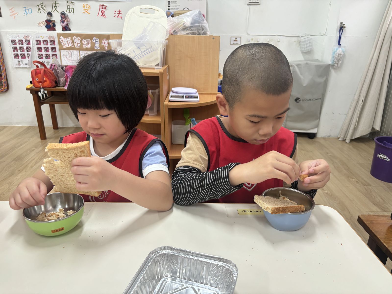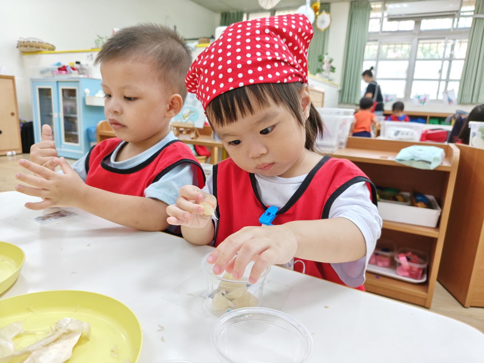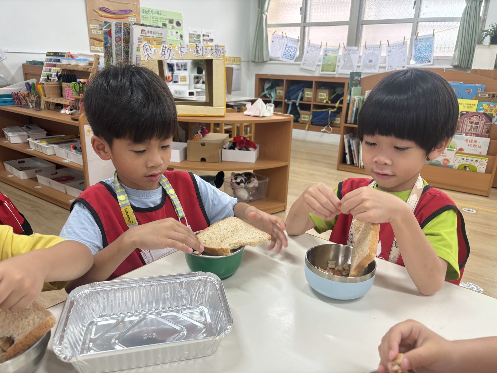 正方形的酥皮切成三角形,再捲一捲就變成了小可頌了,包入鹹鹹的起司加上甜甜的砂糖,孩子們都一口接著一口呢!