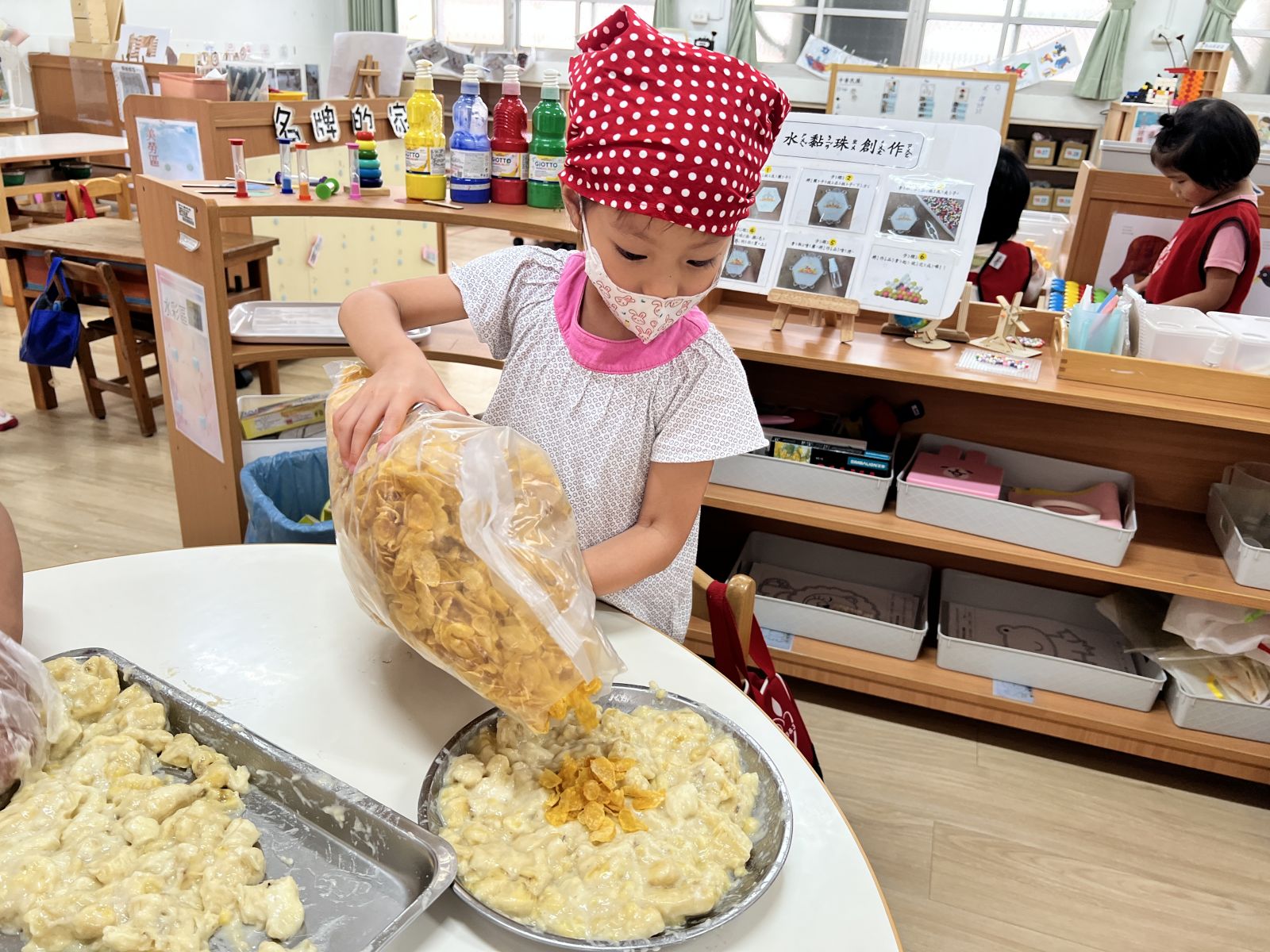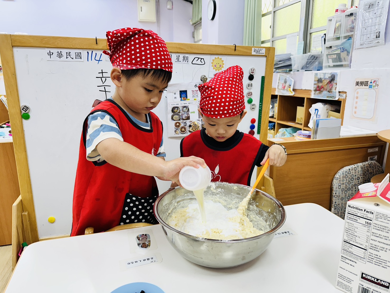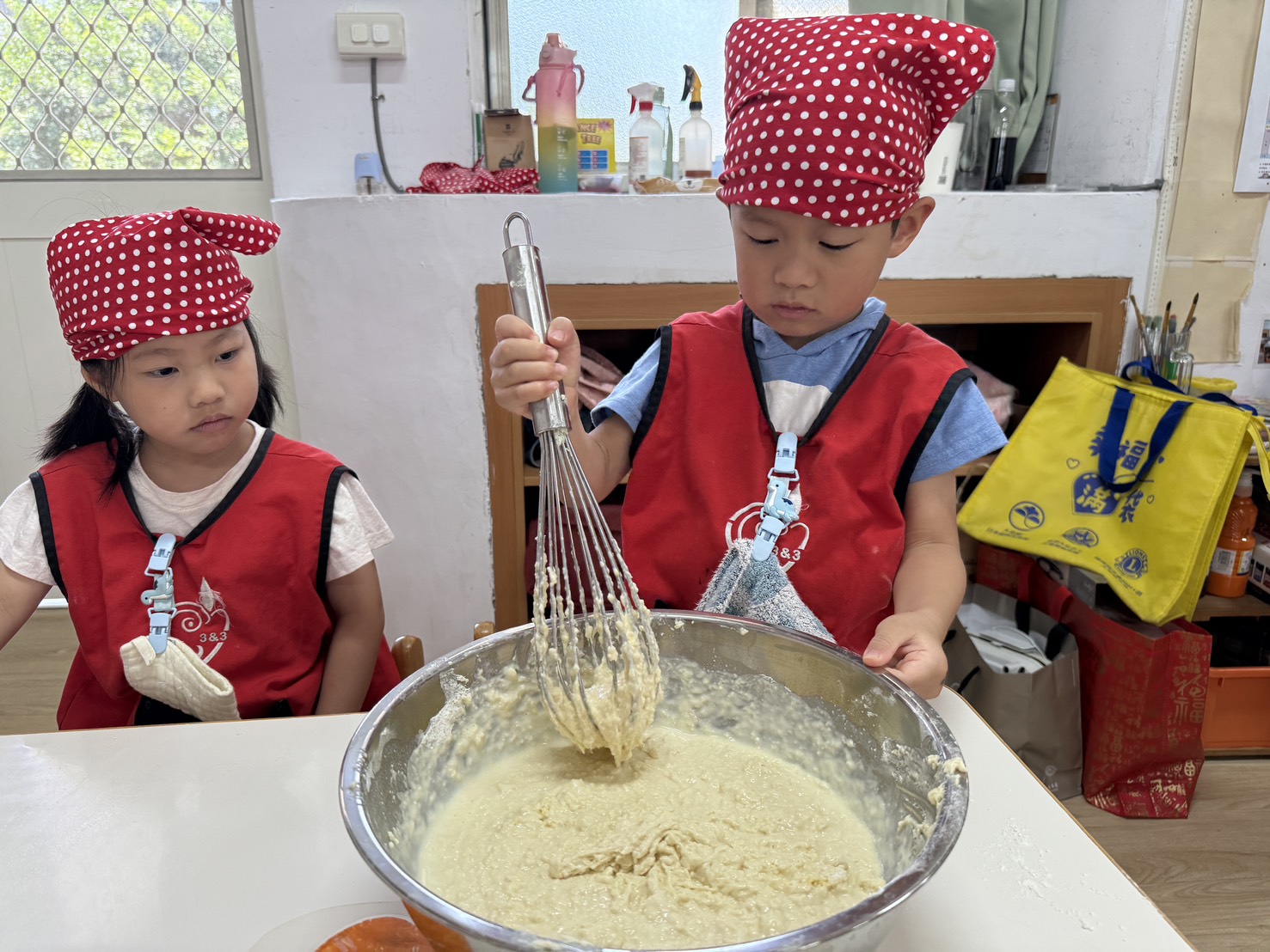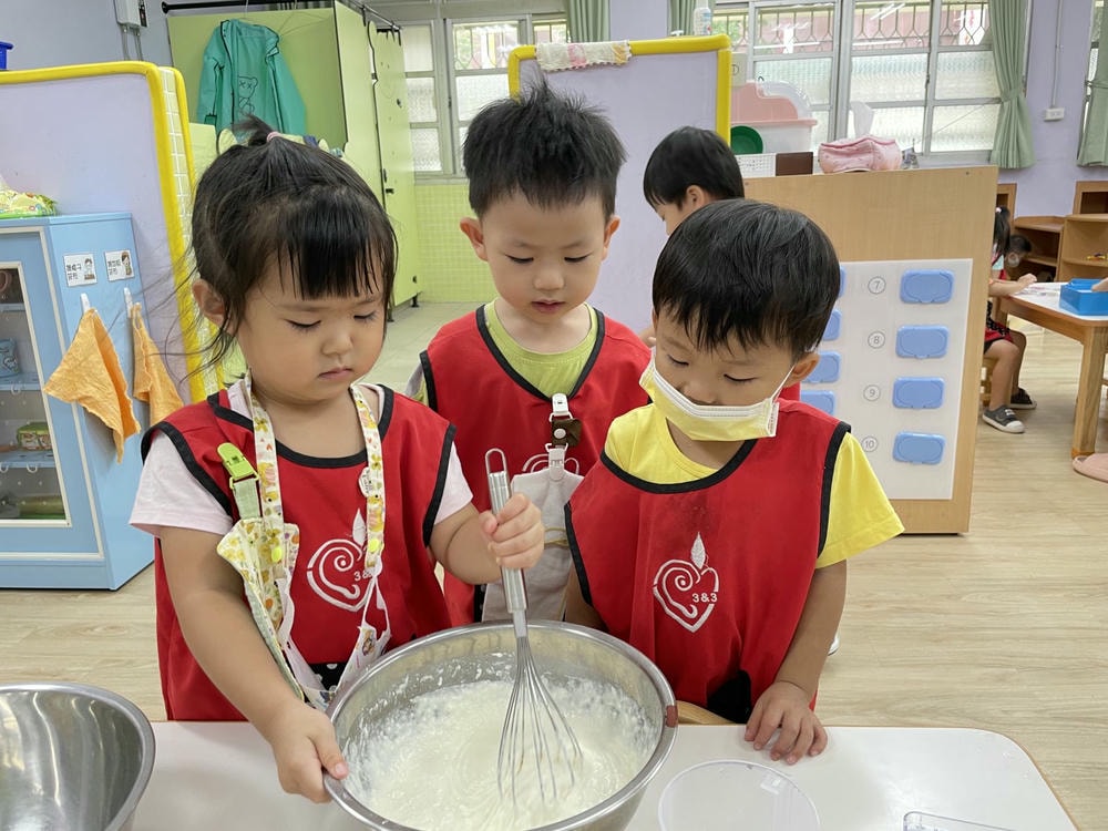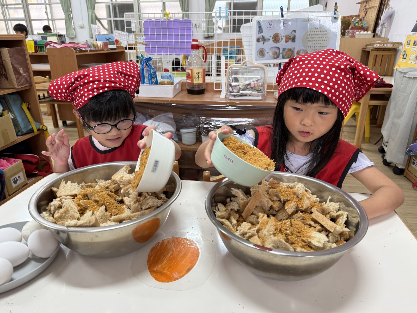 正方形的酥皮切成三角形,再捲一捲就變成了小可頌了,包入鹹鹹的起司加上甜甜的砂糖,孩子們都一口接著一口呢!