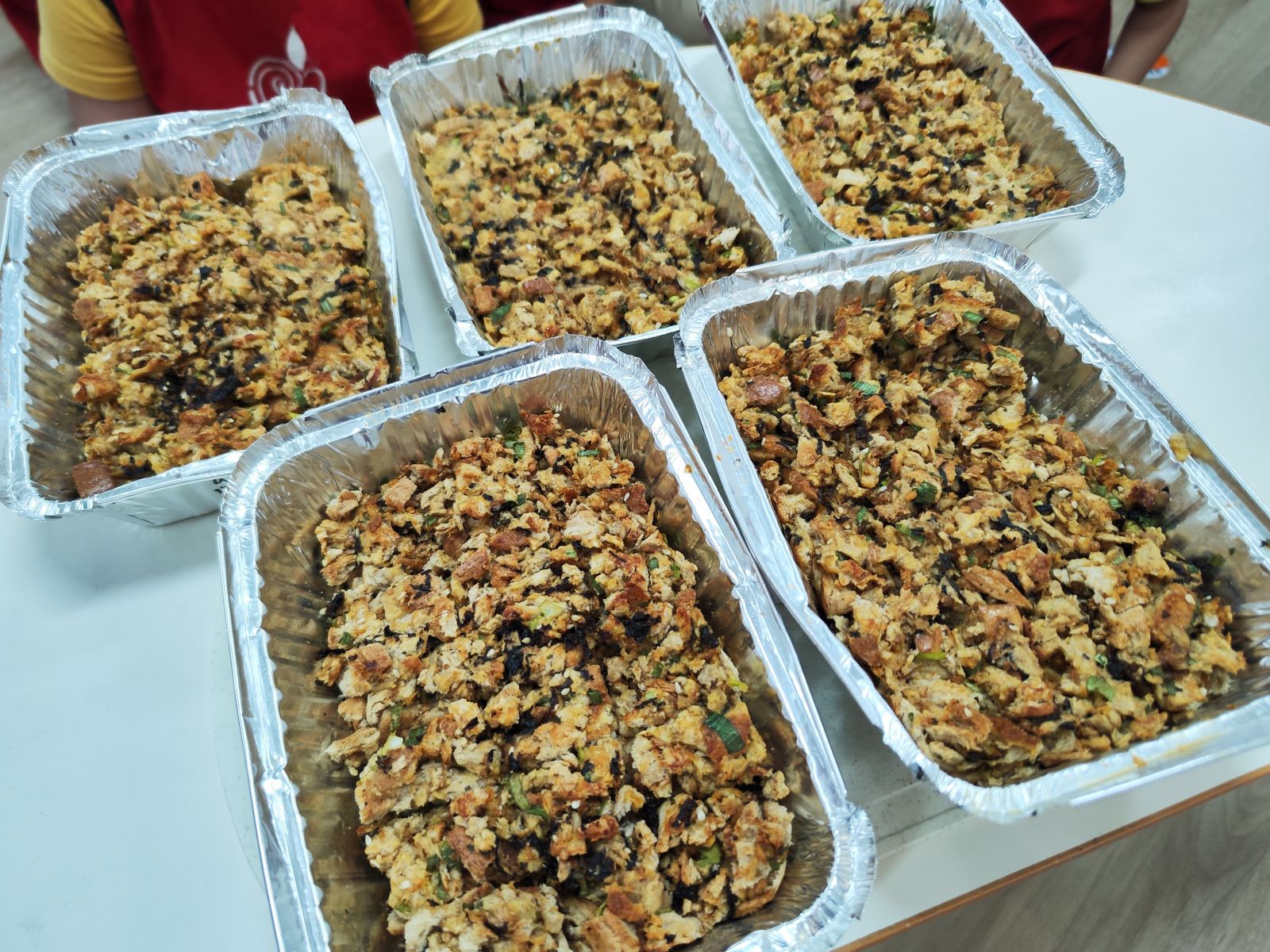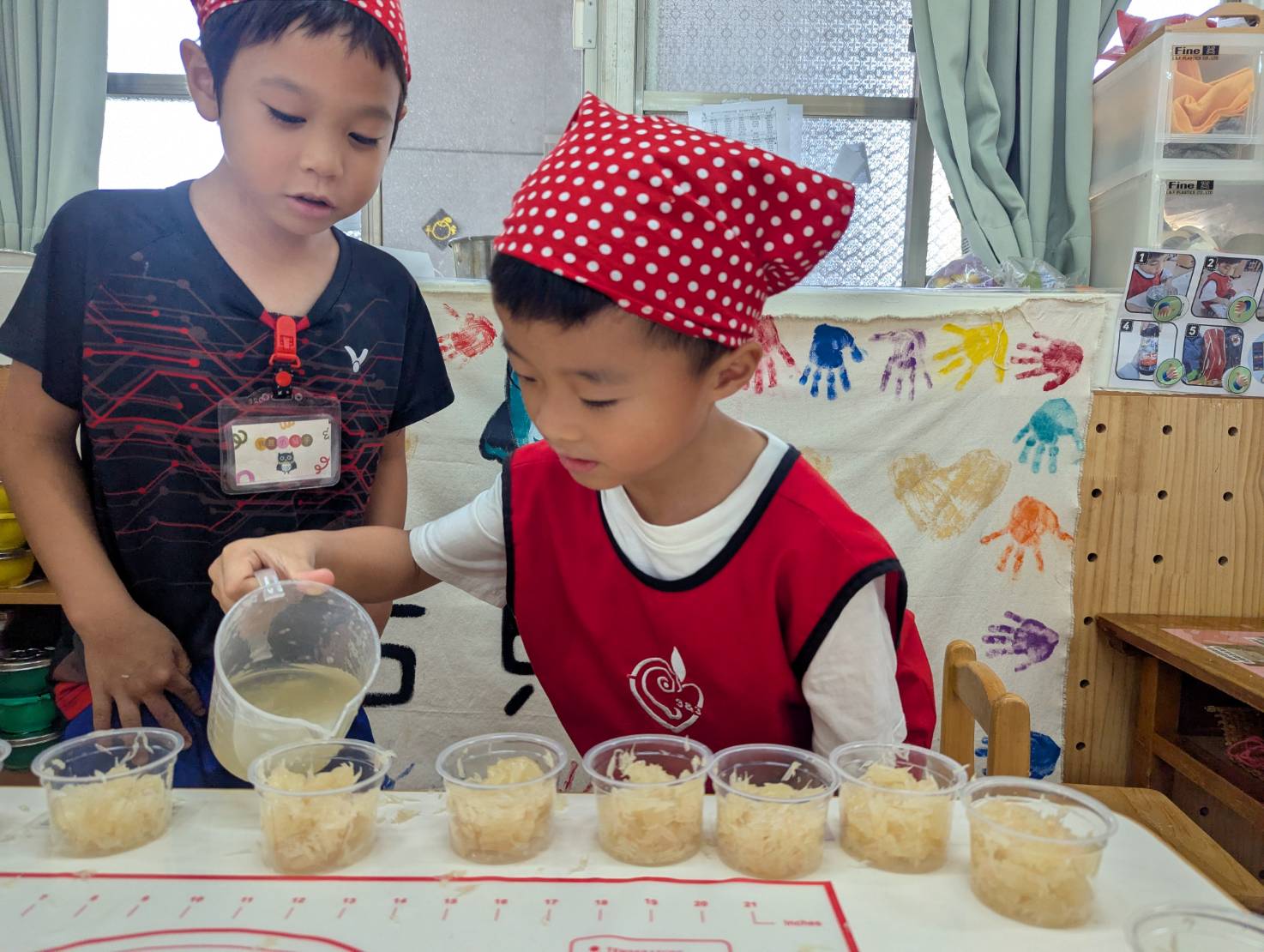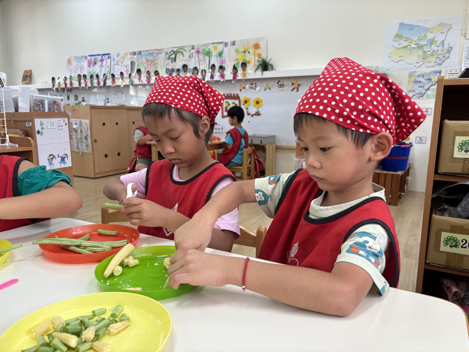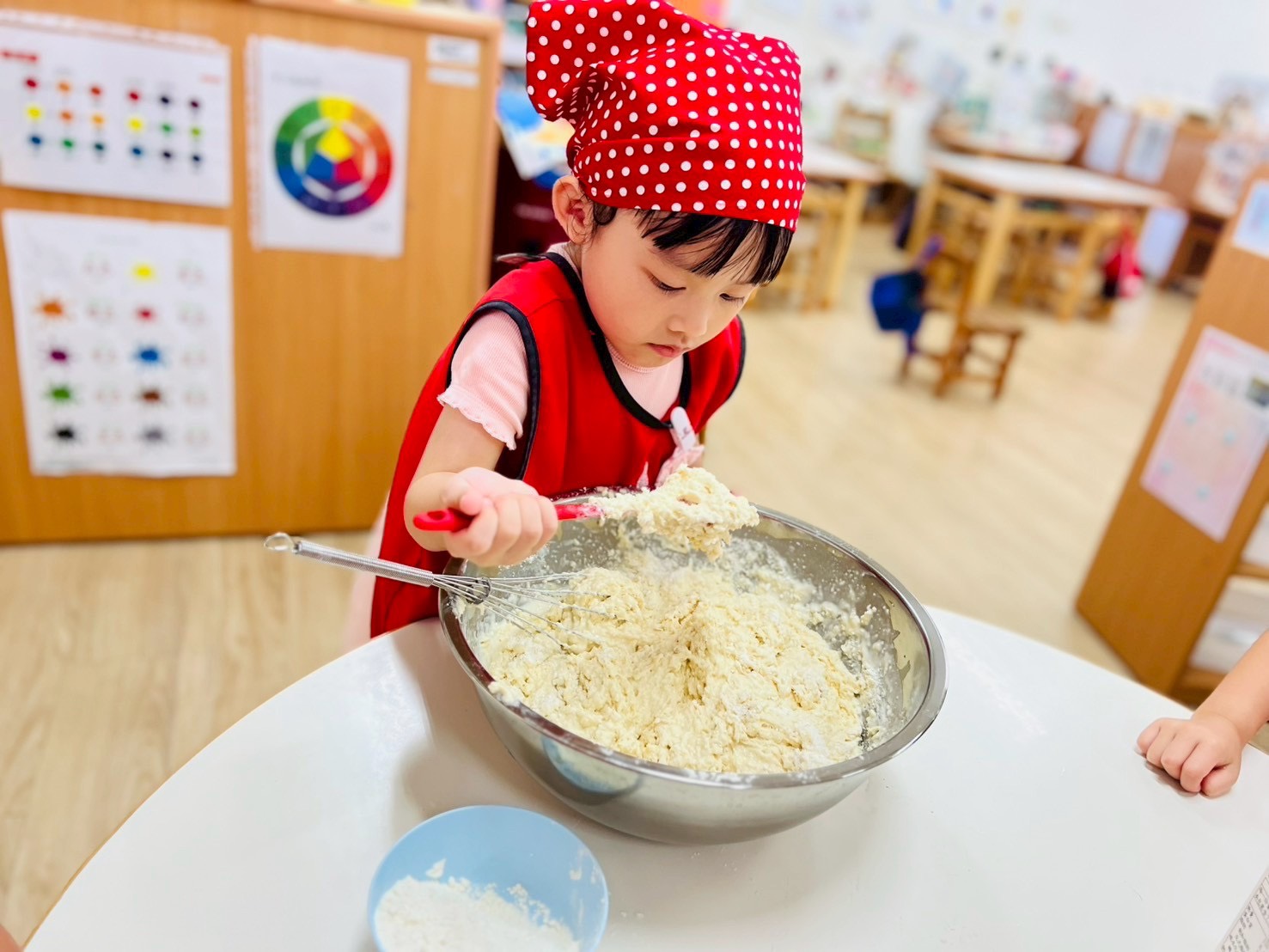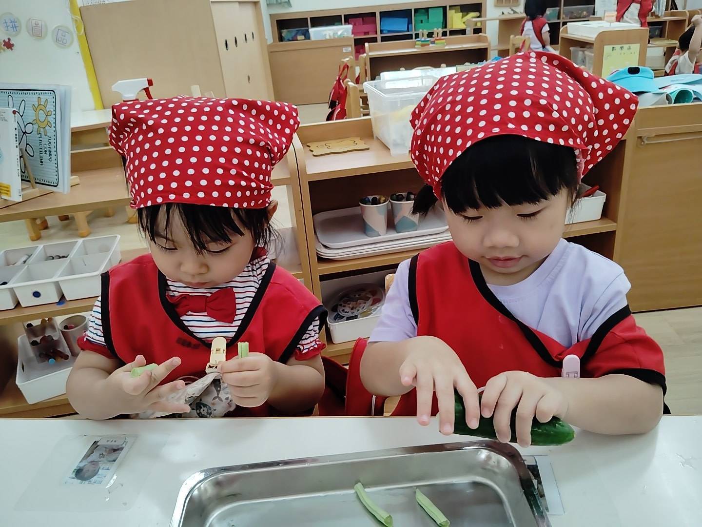 運用食物剪刀,把長長的青蔥變短,加入麵粉、水,變成香噴噴的蔥油餅。