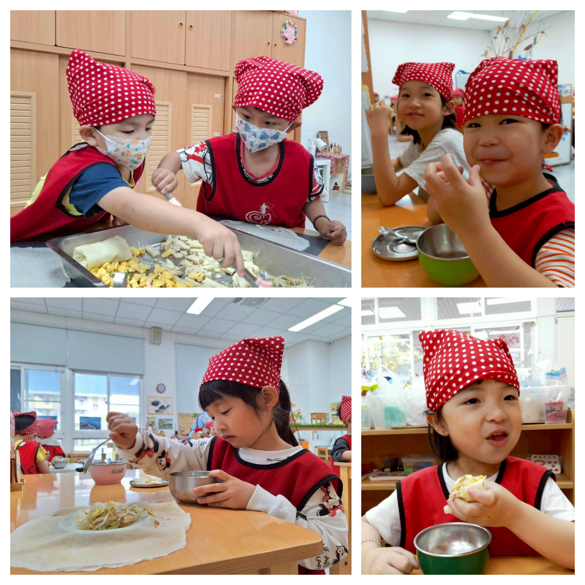 透過活動,了解清明節吃春捲的習俗、認識傳統食物的文化意義,建立健康飲食概念(春捲中的蔬菜、肉類等),其了解均衡飲食的重要性,完成屬於自己的春捲,提升成就感與自我肯定。