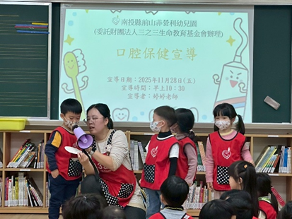 ▲有獎徵答-牙齒保健的方法有哪些。▲全體一起跳刷牙歌。