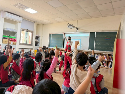 ▲教導手指的方向。 ▲跳愛眼操,一起保護眼睛。