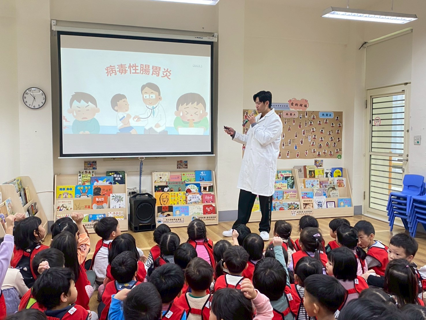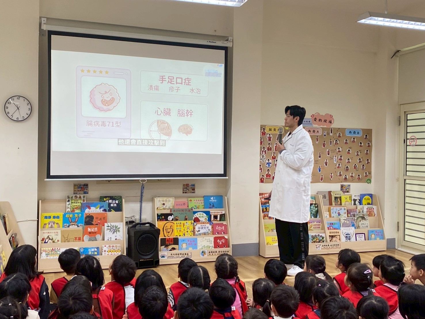 透過生動的圖片與簡單易懂的講解,孩子們一起認識甚麼是腸病毒,