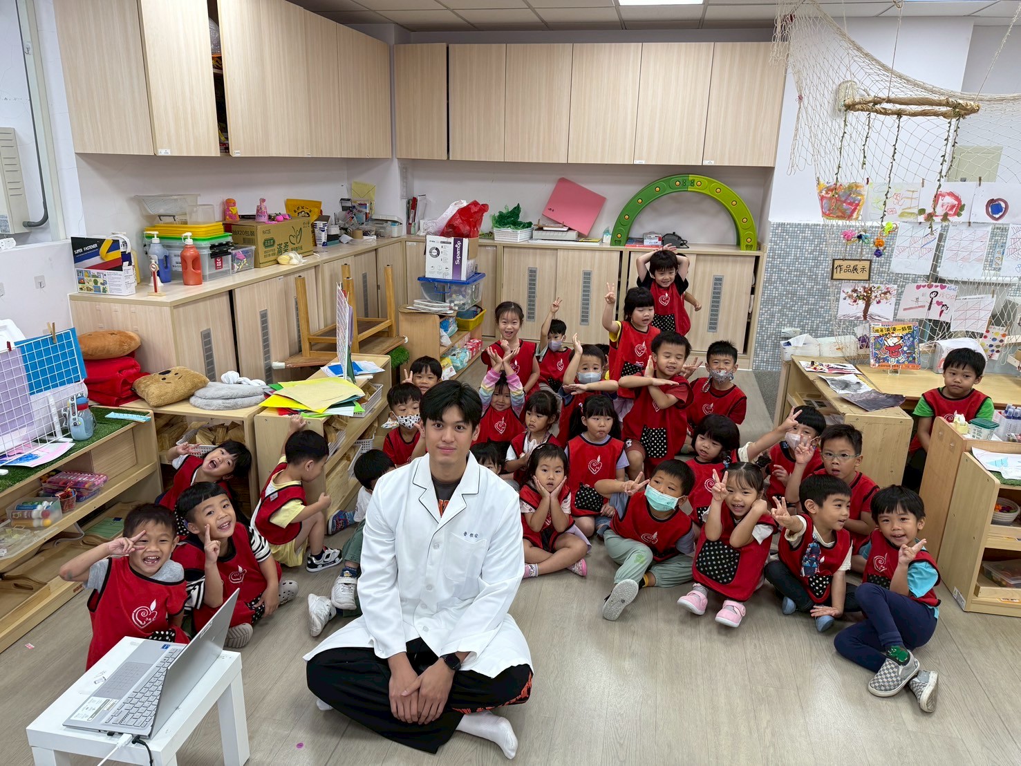 這個月衛生教育主題是「正確刷牙的方法」,護理師透過牙齒模型,帶著孩子們一步步練習從外側、內側到咬合面都刷乾淨的刷牙步驟。小朋友也跟著比一比動作,學習正確的刷牙方式,知道為什麼要早晚刷牙、刷多久才有效,保護牙齒從好習慣開始!