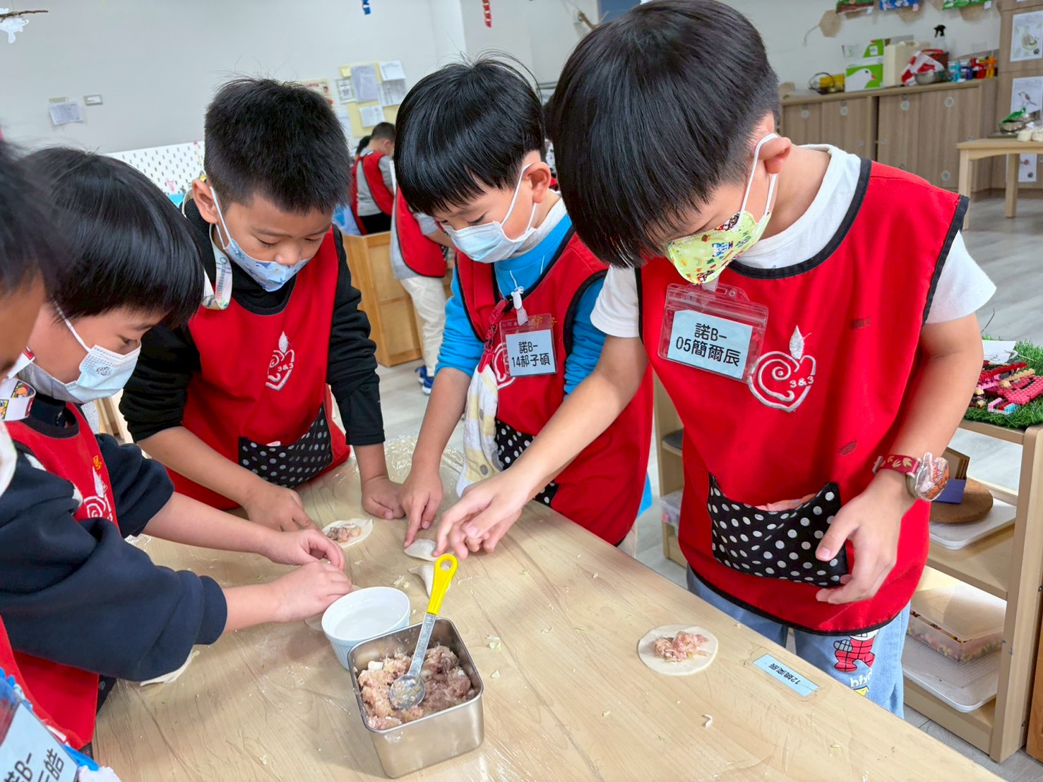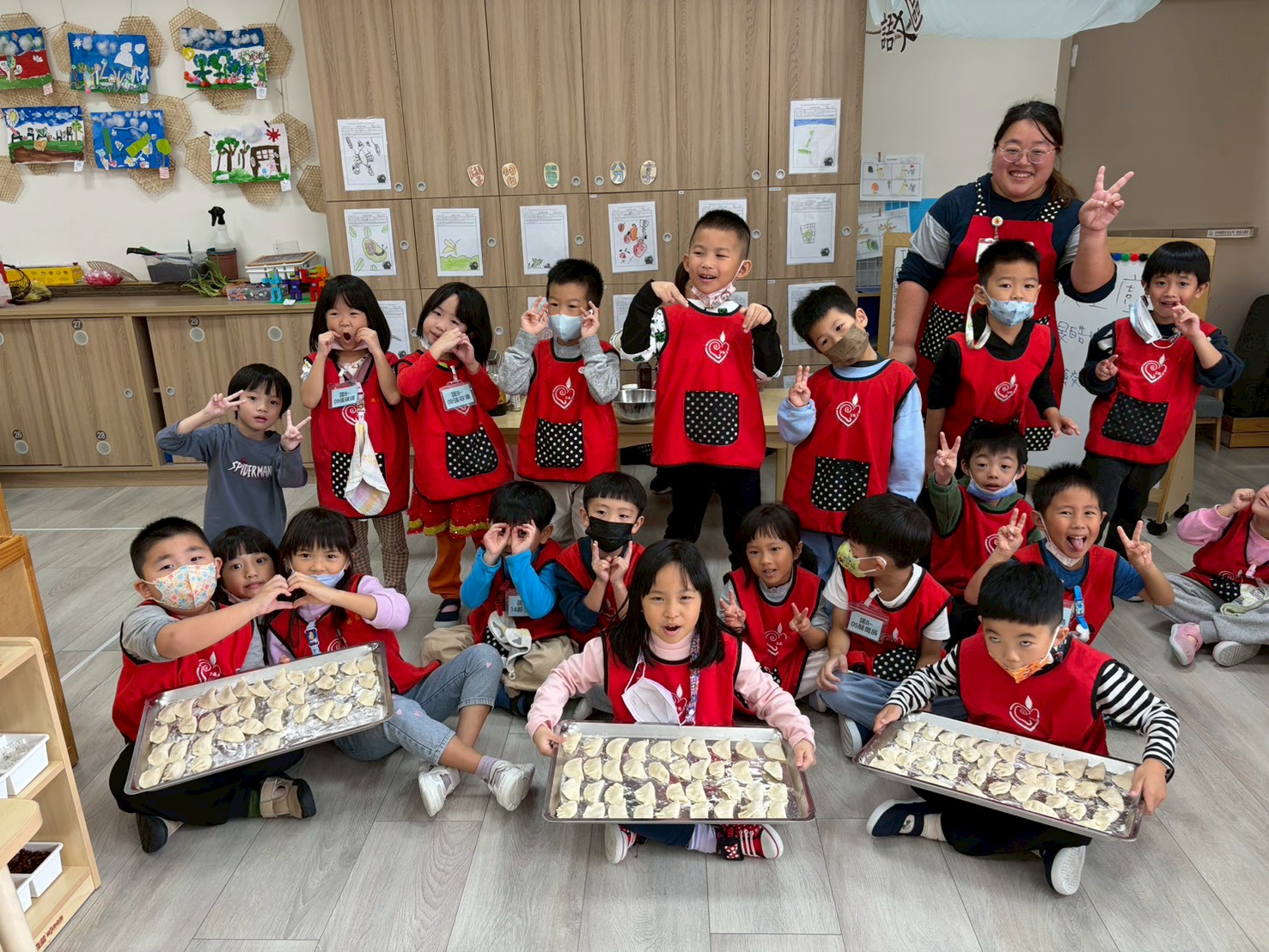 淡海小小農夫們在經過幾個月的細心照顧後,蔬菜終於慢慢長大成熟了!諾貝爾B班與諾貝爾C班的孩子們也興奮地合作採收高麗菜和瓠瓜。其中,諾貝爾B班特別安排了「料理大主廚」活動,將高麗菜和瓠瓜做成水餃餡料,並邀請家長帶領孩子們一起動手包水餃,最後品嚐美味的水餃料理,每位孩子臉上都洋溢著滿滿的成就感呢!