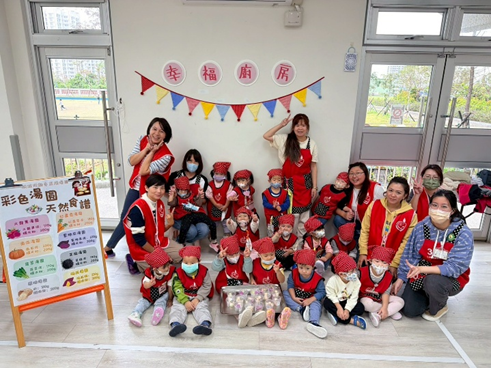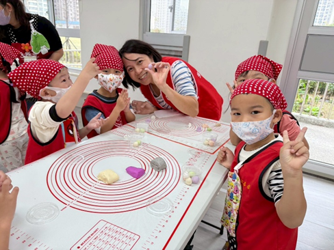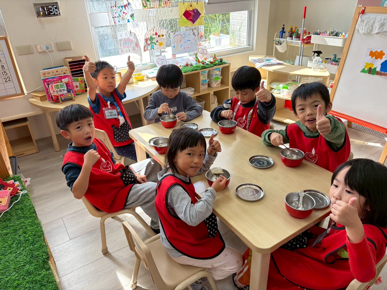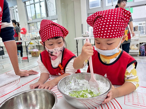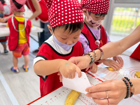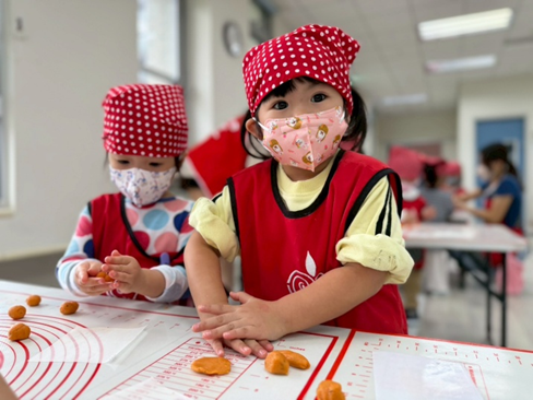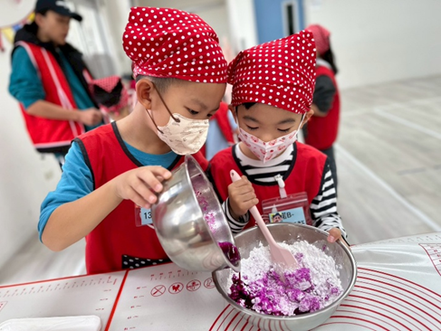 此次幸福廚房烘焙活動結合冬至節慶,帶領幼兒製作「繽紛蔬果彩色湯圓」。活動中,孩子們先認識冬至與搓湯圓的意義,並了解由 8 種蔬果製作的天然湯圓顏色,接著專注將蔬果泥與糯米粉均勻攪拌,以及練習動手搓湯圓。最後完成後,將這份暖心美味湯圓帶回家與家人分享喔!