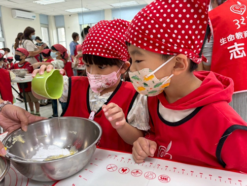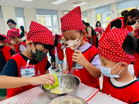 這學期的幸福廚房開啟囉,第一次就讓大家做小圓手工餅乾,幼生們都很期待烘焙的活動;從一開始的介紹食材,接著把所有食材攪拌均勻,再讓幼生們擠出小圓餅乾,並在上面加點腰果、杏仁、葡萄乾做裝飾,最後將他們的成品送入烤箱,烤好後裝入碗中帶回和家人分享。