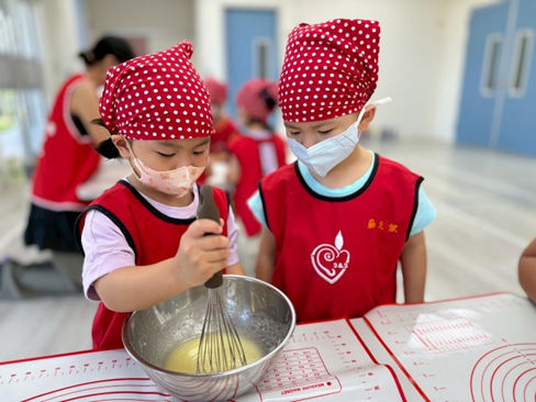新學期第一次的幸福廚房烘焙活動來囉!這次的烘焙活動帶領大家製作草莓果醬餅乾,一開始老師介紹食材,接著幼兒合作將所有食材倒入並攪拌均勻,完成後變成麵糰,幼兒練習將麵糰切塊搓圓壓扁或壓模,最後再擠上草莓果醬即大功告成!過程中大家都非常認真完成任務喔!完成成品後,幼兒臉上都洋溢著滿滿的成就感!