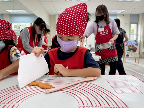 期待已久的烘焙活動終於在3月開始啦!這一次我們要帶著孩子們一起製作的是『鈕扣餅乾』,我們先帶領孩子們一起從認識食材開始,看看做餅乾會需要用的麵粉、奶油、雞蛋長什麼樣子,大家也能夠合作一起將麵團攪拌均勻,用手將麵團搓圓壓扁,最後用工具做成鈕扣的樣子,送進烤箱出爐就可以帶回家與家人分享啦!