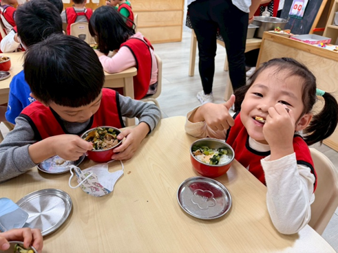 淡海小農夫們辛苦照顧的蔬菜終於長大囉!諾貝爾A班與奧斯卡A班的孩子們開心地一起採收青蔥、白蘿蔔和四季豆,還請廚房阿姨協助把這些新鮮蔬菜變成美味的佳餚。自己親手種植的蔬菜特別香甜可口,大家都吃得津津有味喔!