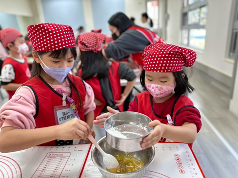 這次的烘焙活動帶領大家製作香香甜甜的蜂蜜杯子蛋糕喔!我們一起認識食材,並且輪流合作混合攪拌,過程中大家都非常小心翼翼,最後再將完成的麵糊倒入紙杯中,一個個可愛的杯子蛋糕就準備進烤箱囉!活動結束後,小朋友們也將親手製作的成品帶回家,與家人一同分享這份甜蜜與成就感。