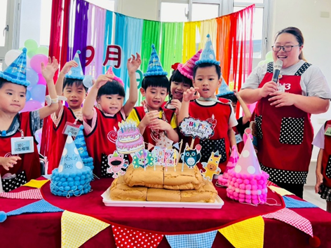 這次的慶生會上孩子們開心的接受大家的祝福,一起唱生日歌慶祝,可以看到每一位小壽星臉上洋溢著幸福的神情,而我們也邀請了小壽星的家長到場獻上生日祝福,期許每位小壽星都能平安健康、快樂開心地長大,勇敢地迎接每一個階段的挑戰,祝9月的小壽星們~生日快樂!!!