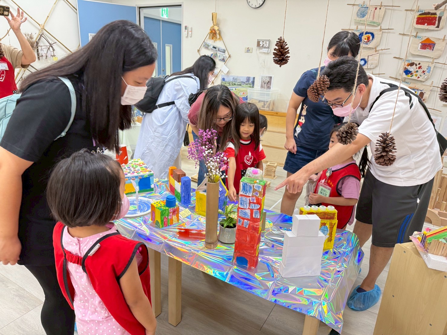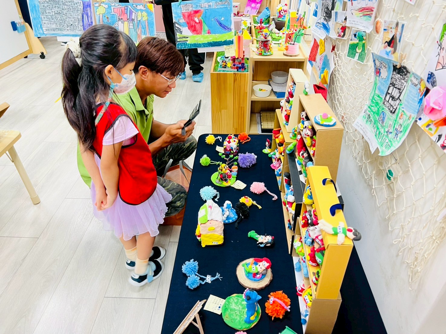 在113學年度第二學期,我們探索了幼兒園附近的學校——淡海國小。透過一系列主題活動,老師引導孩子們認識並觀察國小校園中的人、事、物,從各種線索中觀察並發現其中的意義。這些學習過程不僅融入學習區中,我們也將學習成果在學期末進行了一場豐富的高峰成果展,並邀請家長蒞臨參與,欣賞孩子們的努力與成長,特別是當孩子們向爸爸媽媽介紹自己作品時,臉上洋溢著自信與成就感,讓人感到無比欣慰與驕傲。除了欣賞作品外,親子們還一同享用小點心,整個活動現場洋溢著歡樂與溫馨的氛圍,為這段學習旅程畫下美好的句點。